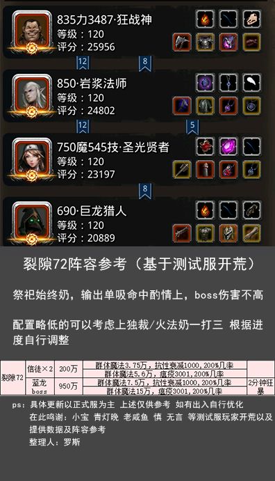 居然2次过是没想到的。 第一次采用攻略里的骑祭传法狂战的阵容 最后狂暴还剩4万多血。很显然,继续这个阵容是暂时无法提升4万多输出的,因为奶量压力还是感觉有些大 于是换个思路:传法必备(加技巧、群奶),祭祀也是必备(群奶、加抗性),输出的话目前阶段也就狂战最强 那么如果要换阵容,只能调整圣骑了 刚开始想的是血法,但是无法奶队友,容易翻车。于是又想火法,但是火法群奶会覆盖传法的技巧buff,又容易减少