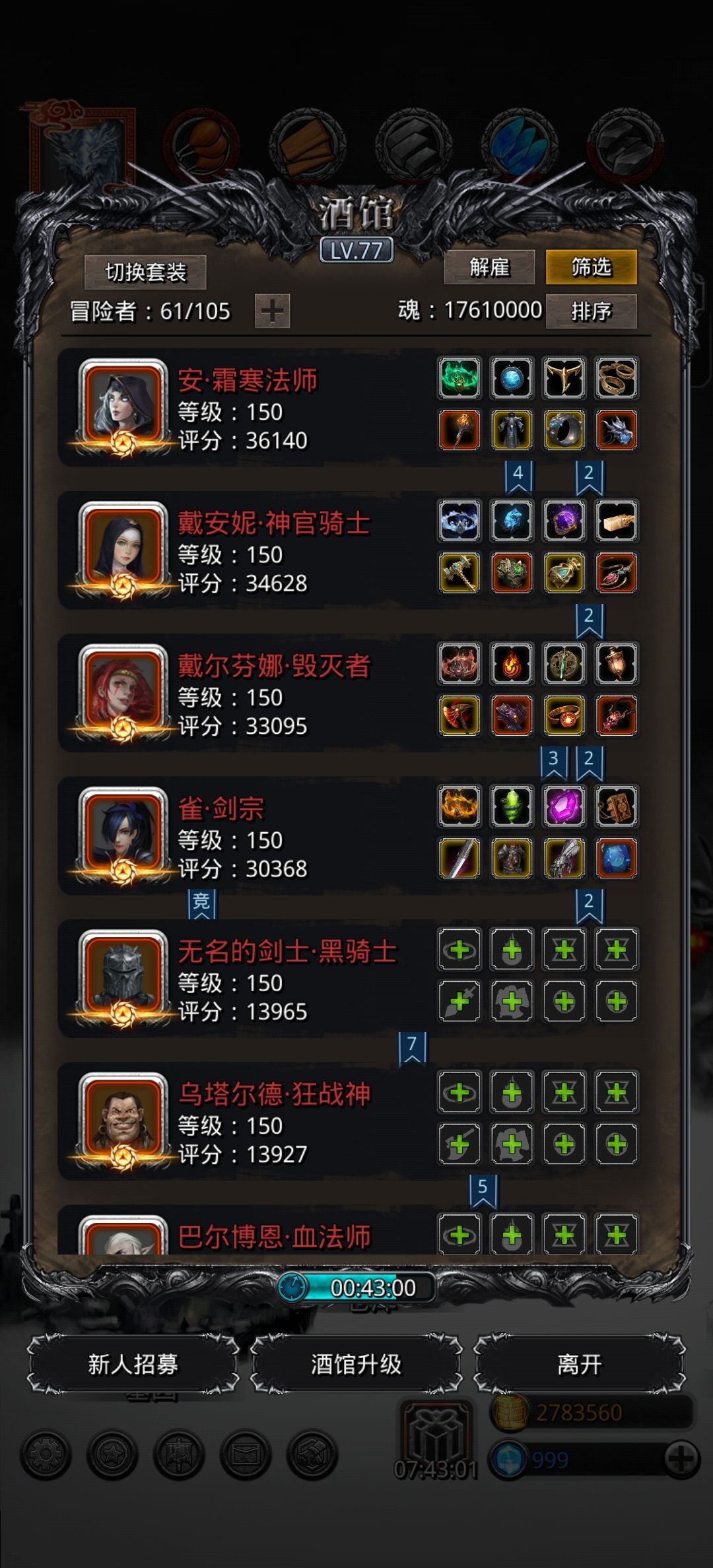 打不过娜娜,准备咸鱼过去,先把浩劫和裂隙的装备拿了再说 使魔徽章打哪个图腾啊,还是直接打海神? 打48猎神者建议,先把夜莺技巧堆起来,建议 夜莺:技巧1450以上,流火之刃,诅咒戒指 技能开连击 血法:注意血量,血法必须是全队血量最低,冥王之杖,夺魂戒指,剩下的堆魔力,开蛛网术 神官:堆奶量,两千以上,只开奶,技能设置要看血法和奶,(血法血量-神官奶量)➗血法血量 巫医:堆技巧,只开奶 有浩劫应该