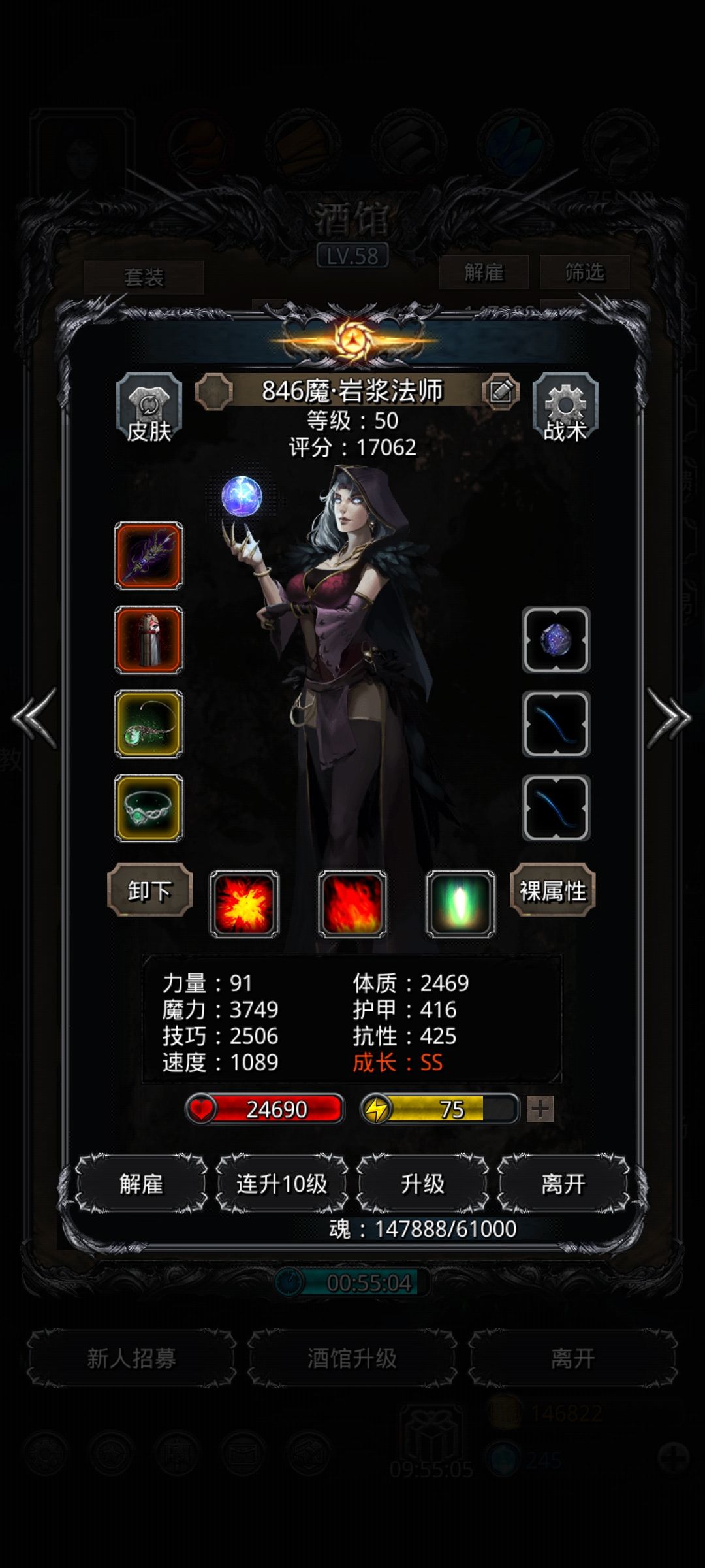 低配打106伤害会差很多(尤其是需要火法补奶的,不需要补奶的已经不是低配了[表情_斜眼笑],9468技的魂贤我是不清楚怎么凑的出来)。低配需要火法补奶的话,技巧战利品优先给夜莺。体质不好调可以上体技环,夜莺不要上火环,火法不要带单吸(吸起来死的大概率是夜莺,抗太低了下限抗的锁甲) 低配拉伤害可以用以下方法: 1.最直接的夜莺连击上减力后上双dot。 2.环和魔力战利品优先满足祭祀(伤害可以看得出来