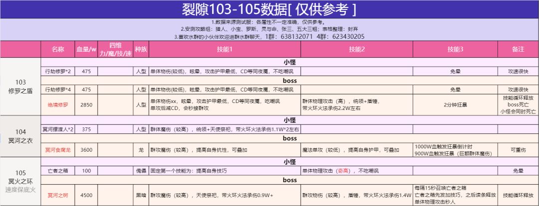 裂隙103-105 安测攻略
