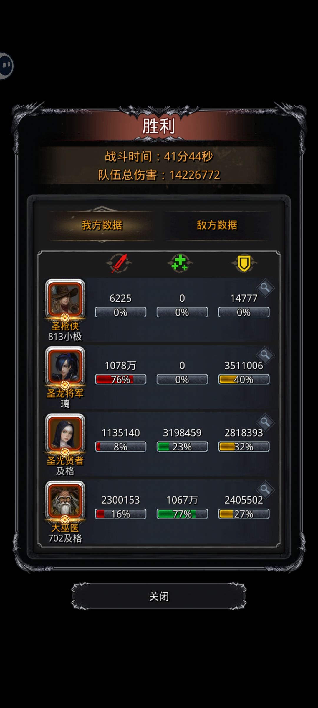 适合遗迹进度比较慢的同学,巫医护甲可以再低些,主要祭祀和圣龙再低有点扛不住了,不过低个1000血左右也是稳的(其实我打半门也用的这套[表情_斜眼笑])