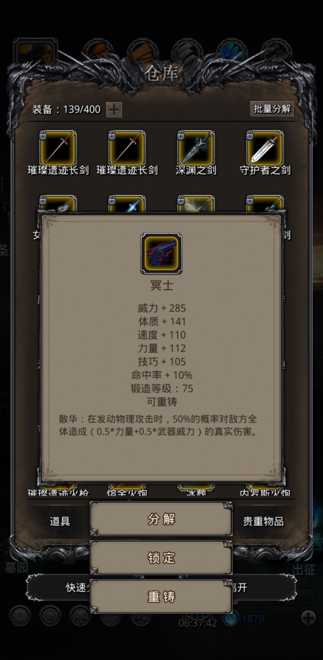 因为是回归玩家,导致主线推得太快,遗迹卡时间进度跟不上(上周刚紧急通了遗迹13,这周准备明天进14), 刷了多少次脸忘了,应该是有两千钻石左右,期间装备一直在调整,如果一开始就对了刷不了那么多次脸的。 留念一下,也给后来者一些参考,属性如图 一开始两个输出用的保底幽风和驭风,只能把左右手打死打到水就开始暴毙,后来拆东墙补西墙,分解了无限制空环,升级了两个多人空环,一个多人魔技水环给祭祀,一个双格挡