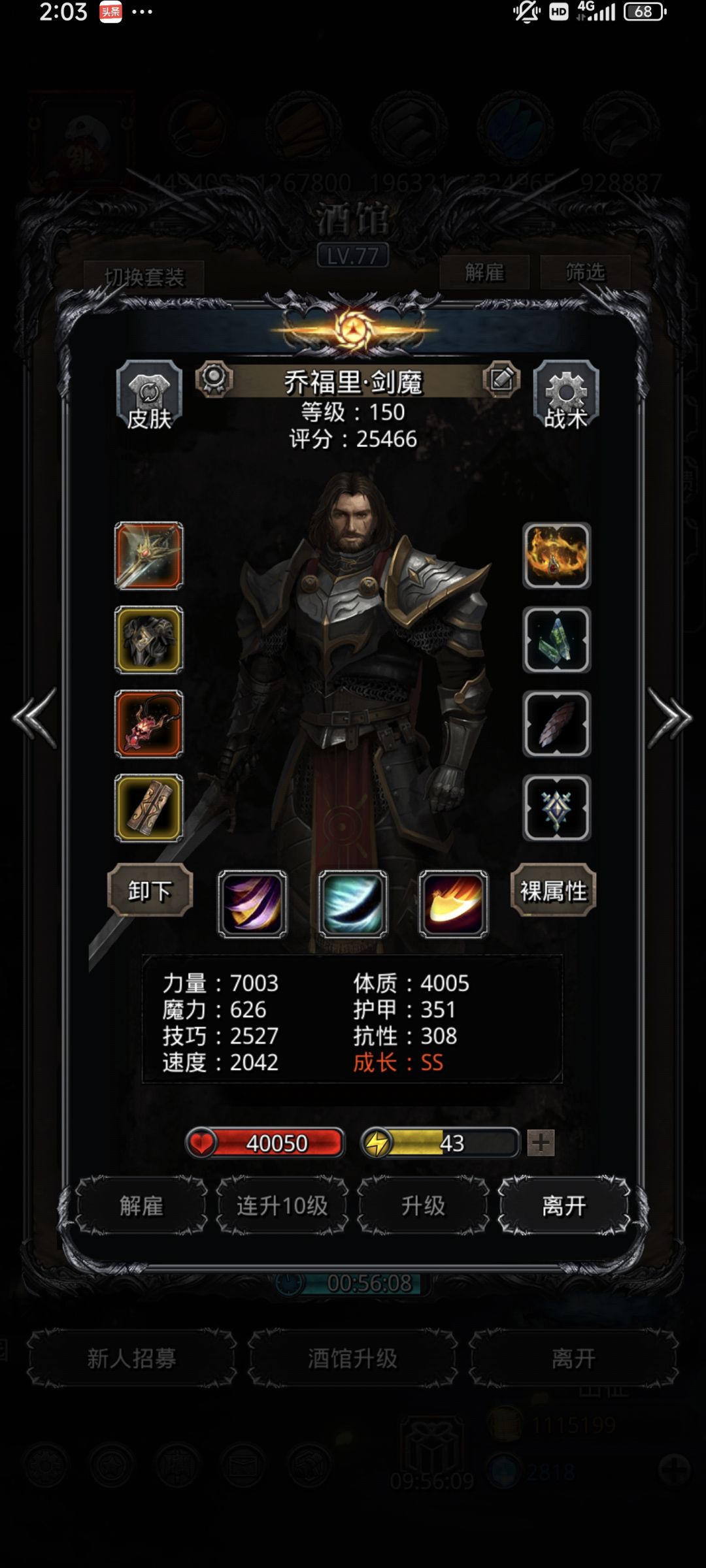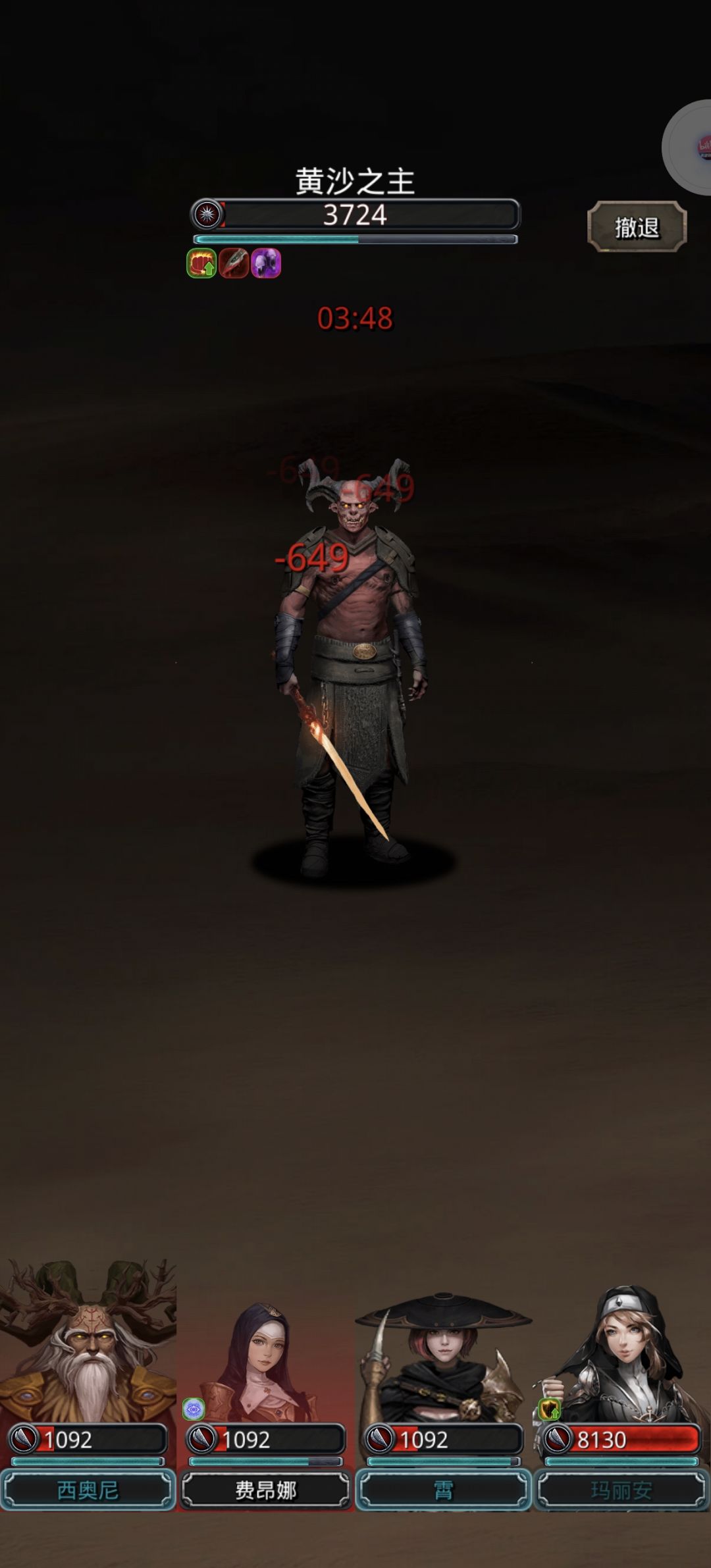 挺有难度的一个boss,主要是要抗伤害又要输出还卡装备,四输出比较稳。可以参考下我的属性。 传猎一定要19以上的单吸才不会翻车。 另一个是要注意狂战出手一次6.3s大蜥蜴是6s。这个卡好出手时间很重要不然就会出现狂战没回上大蜥蜴一下就给拍死了。方法是开局手动等大蜥蜴打了第一下过后立马开自动。出手次数才能挺到最后。