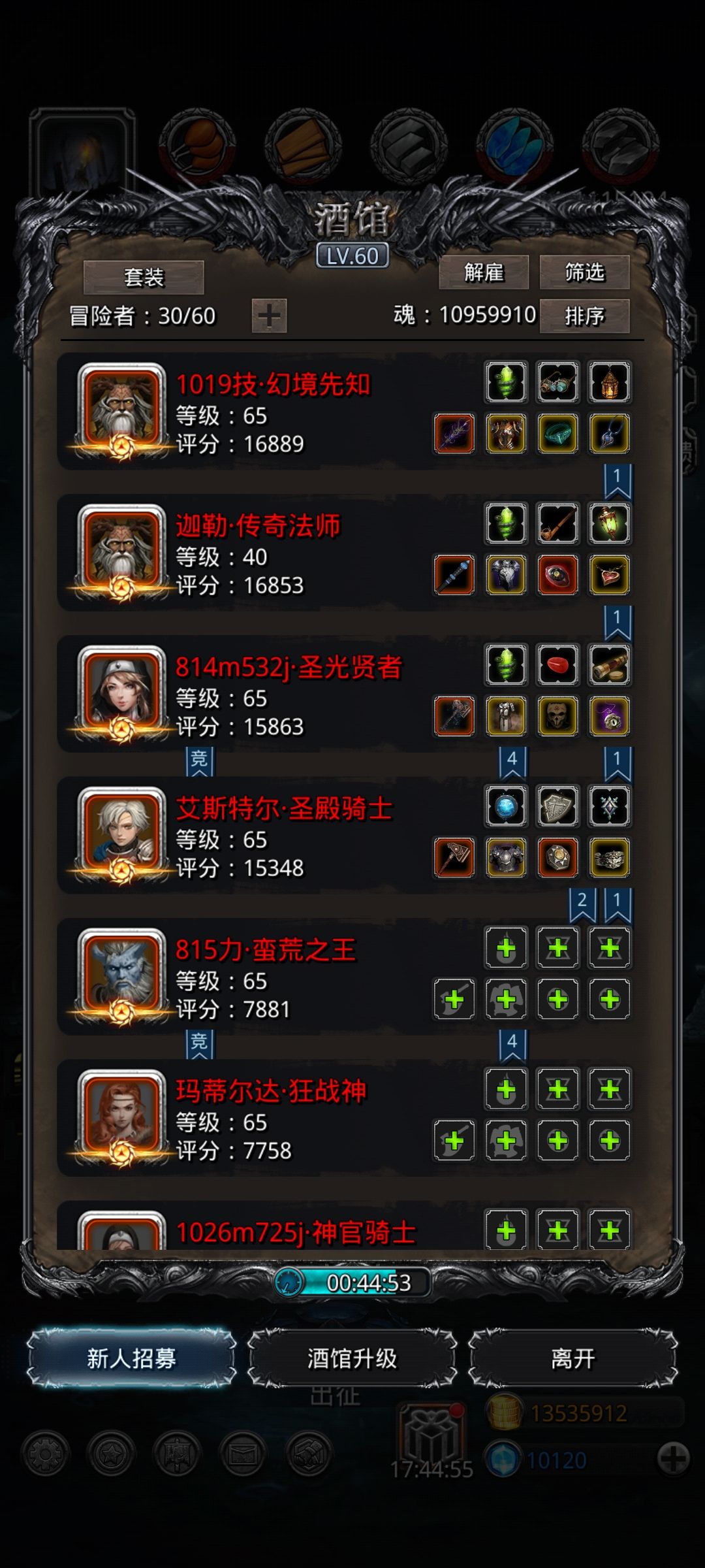 靠自制红装以及战利品,锤N次装备后配属性后,终于过了噬魂小弟了。 血法衣服其实改成灾厄是不错的,但是饰品魔力要求更高了。已经锤了千万来铁实在没铁没钱了。亘古冠给夜魇用的话其实理想是双技双速双体,双技有利暴击命中。这里是双魔双速一技一速。 装备锻造90-100均有 圣迹刺客60,法师69,圣职62. 巫医奶人顺序自己—教宗—夜魇。带先发 血法夜魇默认攻击最低。 教宗始终奶。 噬魂是魔攻夺魂轮流攻击。