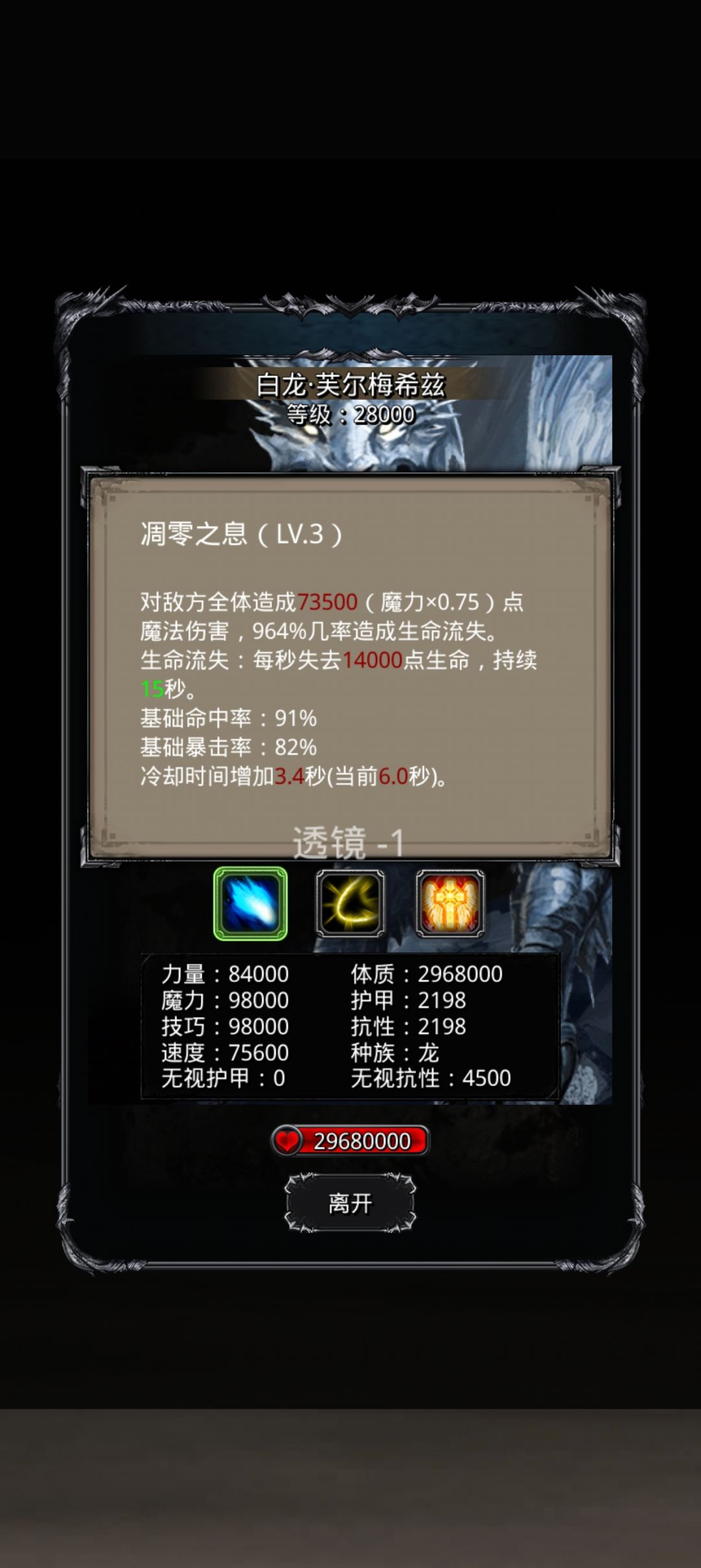 由于迷雾岛三图腾难度过高且限时,且boss的护甲不能再被忽略,除去部分过月有余力造红装的氪佬肝帝,我们利用夜魇破甲蛮子速杀小怪的方法减少队伍暴毙的概率,标准以全月百裂隙51为标准,无需过暗月造红装 由于四免疫过暗月无需打风柱,只有打三图腾时候才体会到风柱的无视嘲讽破甲单攻有多恶心,本套阵容无需回家换人打风柱,只需最低血量的闪避高速夜魇疯狂闪避即可,boss没有风柱怪 boss海神单攻物伤3秒100