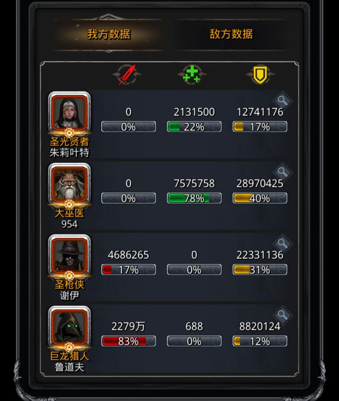 脸都刷烂了[表情_捂脸哭][表情_捂脸哭][表情_捂脸哭]。一直群攻开局,好不容易魔单攻了,伤害又不够。只能把圣枪的命中调低,使劲刷脸。全部是保底魔石。魂圣迹:49级。人物配装和环属性直接看图。 战利品也很拉胯[表情_泪目][表情_泪目][表情_泪目] 独裁:堆技巧 神官:8.3抗+先发(我用的10速先发,凑面板2.1)。 圣光:堆技巧+星国+技先发。 圣枪:堆力和技巧。控制0力速,然后是技巧和命