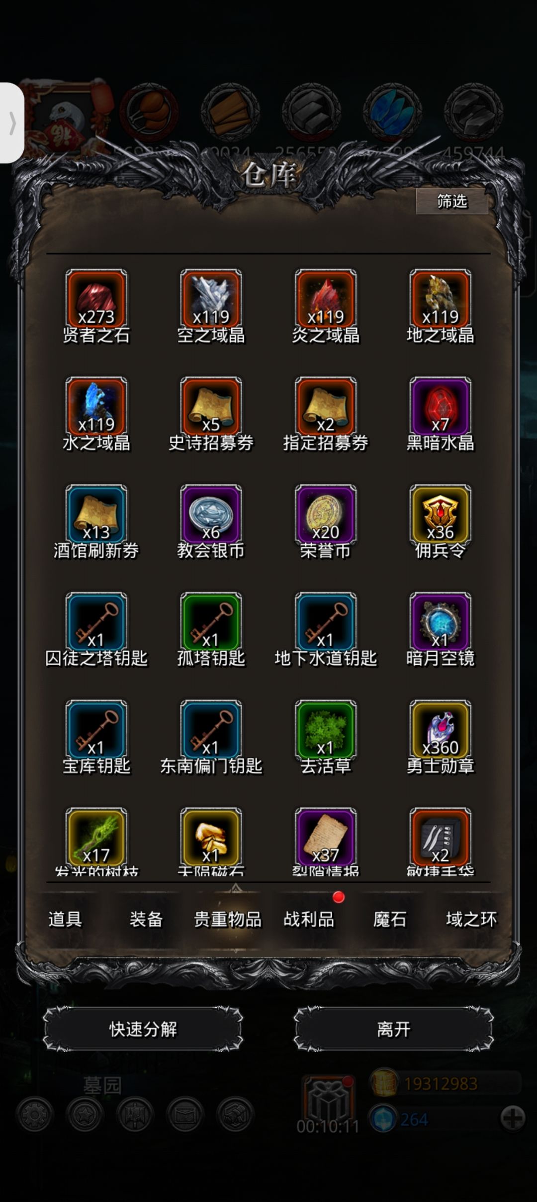 超近道开了魔石,本想着金币蹭蹭蹭往上涨,没想到是打开了一个无底洞[表情_捂脸哭]听说幻境监牢有保底魔石,于是赶了过来。 wiki和论坛大佬们提供了不少阵容,但因为我开魔石就是抄近路,没拿到独裁、亘古和系列遗迹九装备,而且我自制红装少,没做大贤者和红审判,也还没过裂隙61,许多阵容都用不了。wiki的超低配阵容要传法,我也没升,最后参考结合论坛一位大佬的阵容@千夜寂庭,但是改成神官奶虚空和圣光,神官
