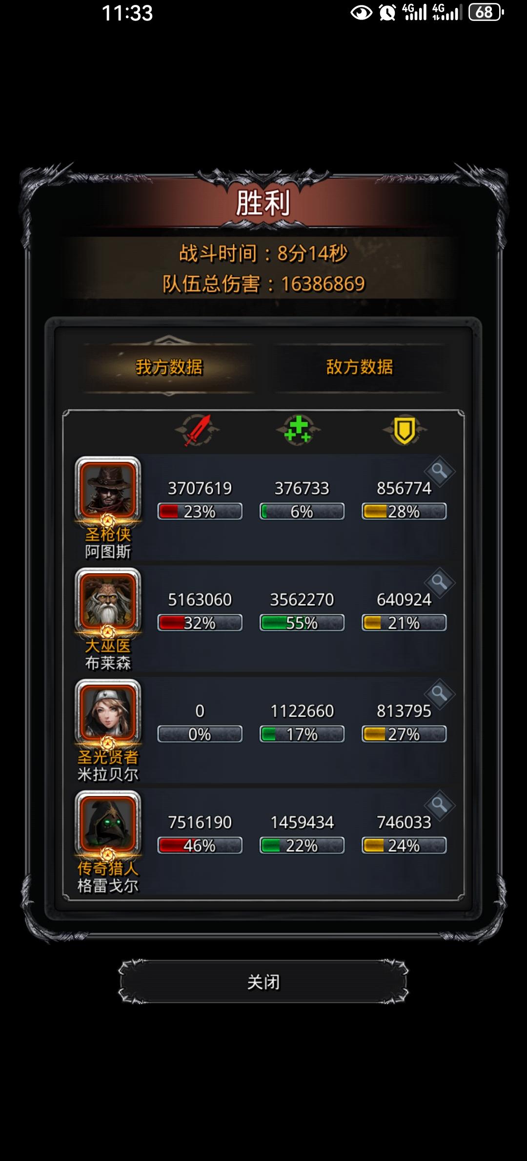 好意外,三分钟不到居然就把小怪全杀了,而且我还没物单吸战利品,本来只是想试试水看看能撑多久的,结果把我惊呆了附上配置让需要的抄作业吧:圣枪开3人群单攻开射击打总血量最高巫医45/75奶不开攻击祭司始终奶传猎黑火药打最少血开局手动控传猎打左下两下,左上一下,然后挂机顺带的,盲猜一下,可能是我四个人的血量都比较接近,所以巫医自动奶每次都能奶中最低