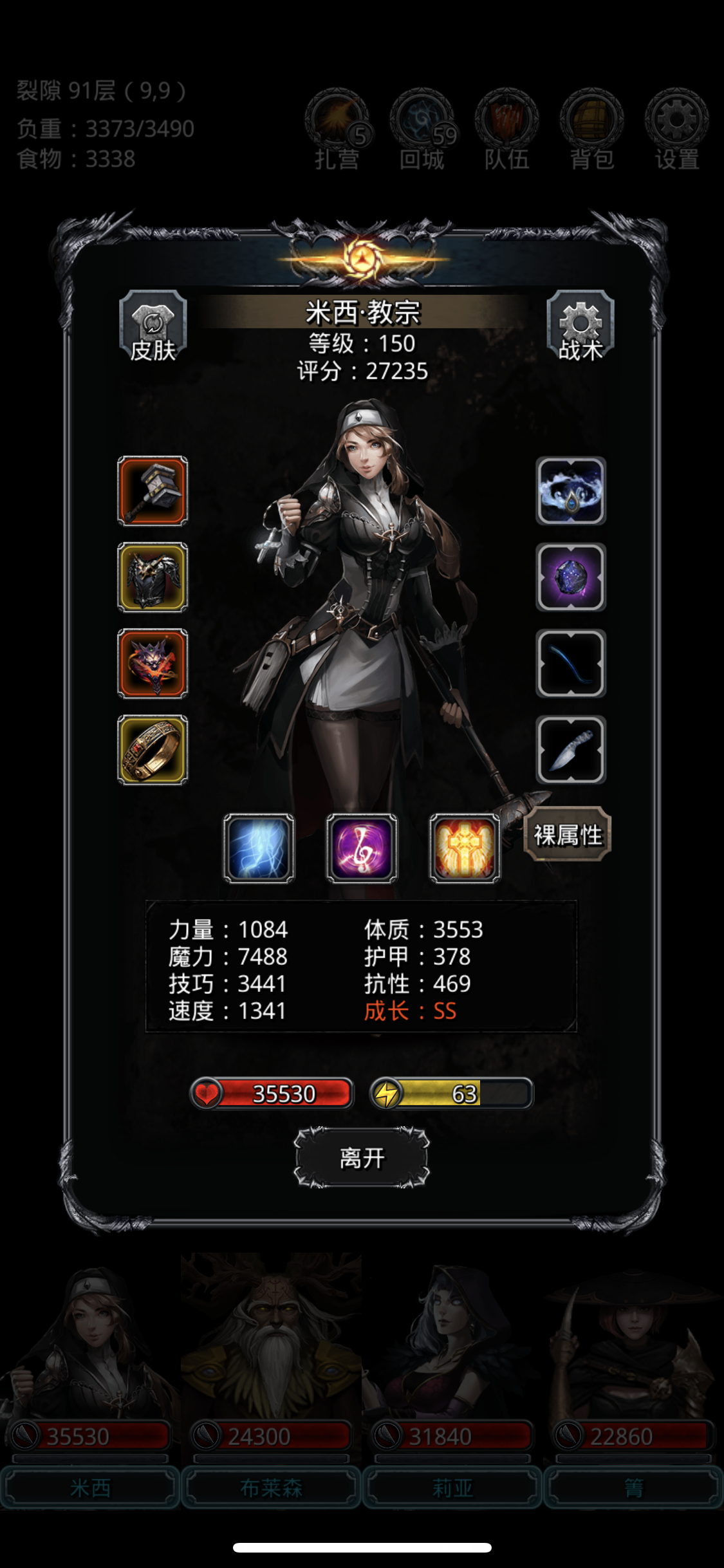 最好的时候也就这样了,看着连续断的兽锤心在滴血,wiki上的套装反复试了,就这套能多次打完双手,没招了