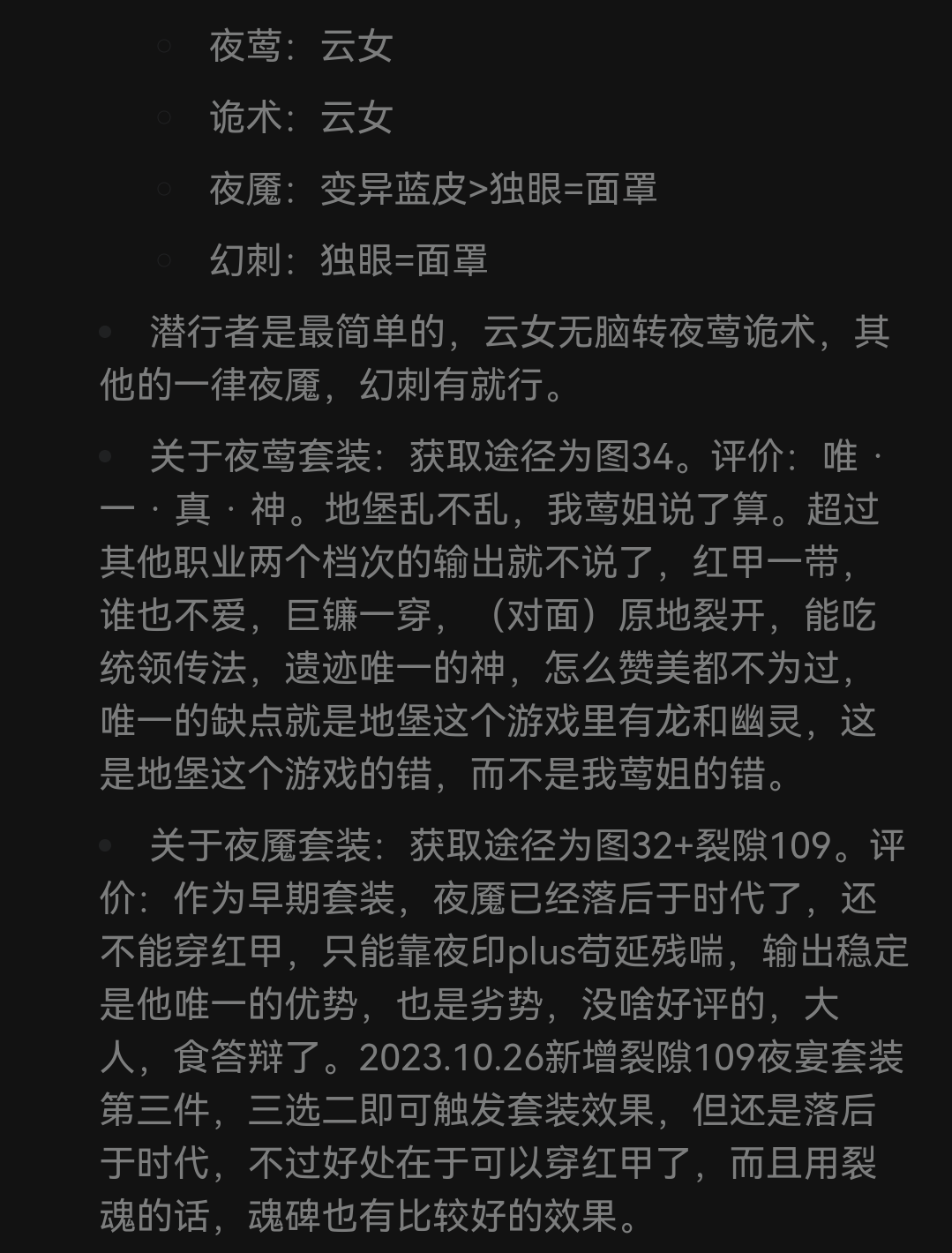 wiki上的ss评价板块说夜莺输出高,但职业板块又说夜魇才是主输出,想问哪个是版本新一点的答案?