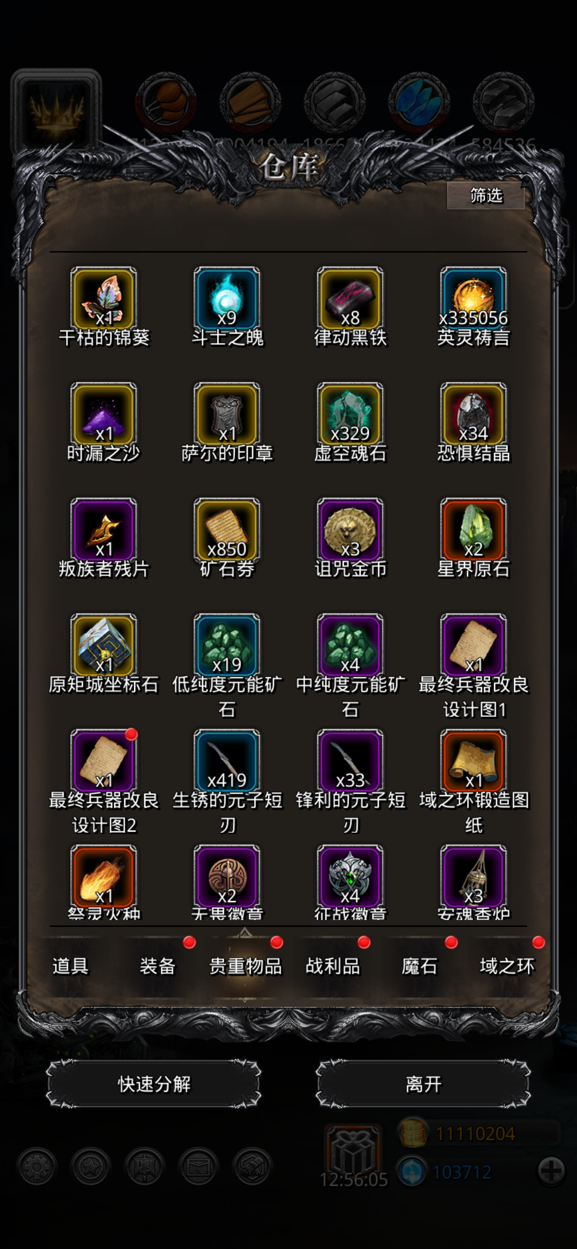 这是我全部家当了,哪些可以留,哪些可以当狗粮。刚过暗月神现在啥也打不过,需要买新出的战利品吗