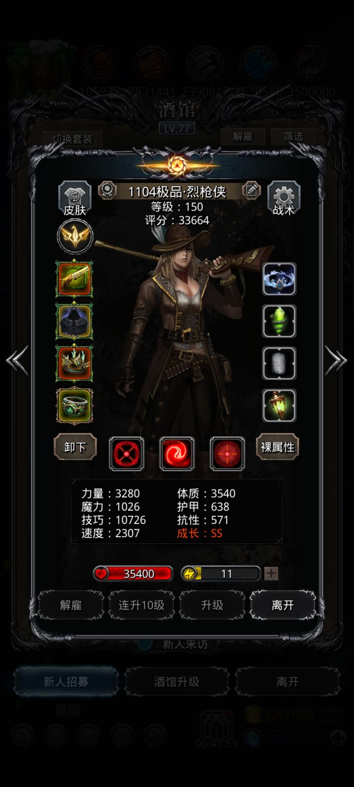 诡术有用两个打的boss,第二个不用日,剩下3一个就够,诡术貌似一个也够,用替代的记得好像手动就会很麻烦,在多追就是刷战利品刷红石用了,不用要求属性,及格就够用,夜莺要追一个极品,不然你就要有两个11技往上的战利品,