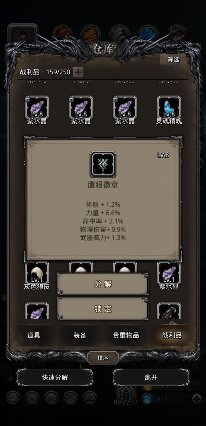出货了,出货了。这个游戏对于萌新还是很照顾的,我就知道有新手保护期。10个战利品炒菜一个战利品味儿。最好的一个,当然要献给大家了。嗯,出门了,晚上不回来吃饭了。祝玩家们和我一样万事大吉