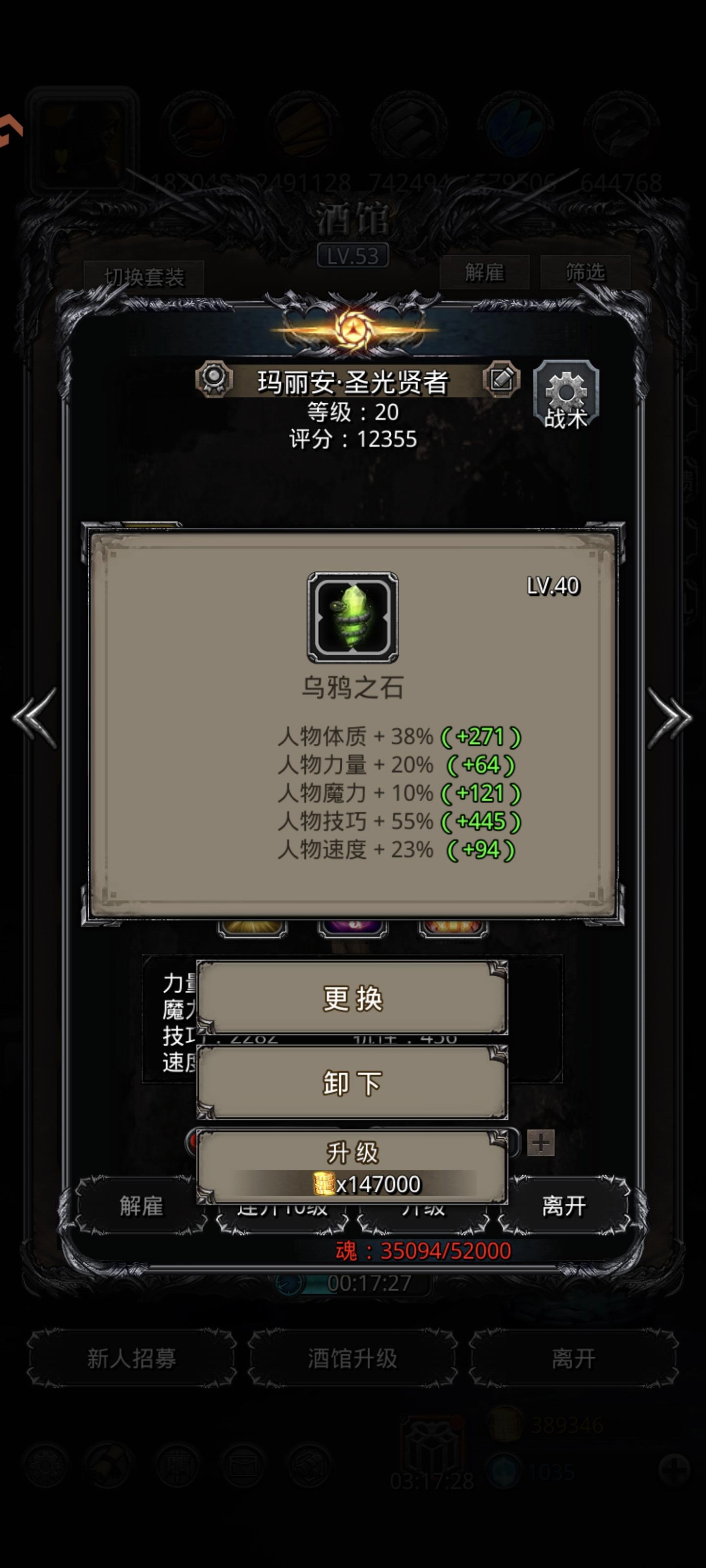 这颗乌鸦我记得18级就有30%多的技巧了,拿了灰岩的100w升了8级好像加了5,目前只有这一颗40级55的乌鸦,你们觉得有必要升下去吗
