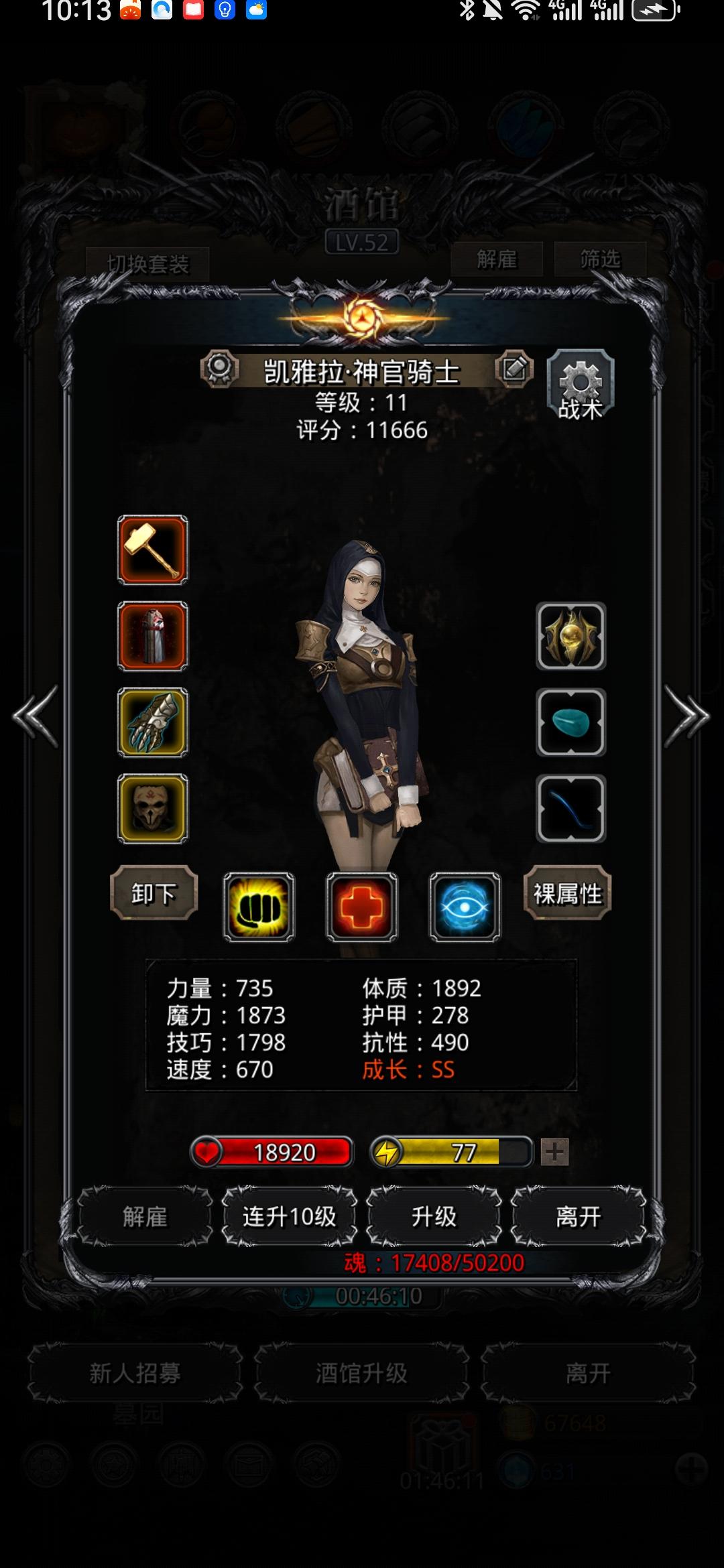终于来了法师,凑齐了,现在4星50级,工坊还要两天才30,才能转5星,接下来推图了,现在才到11