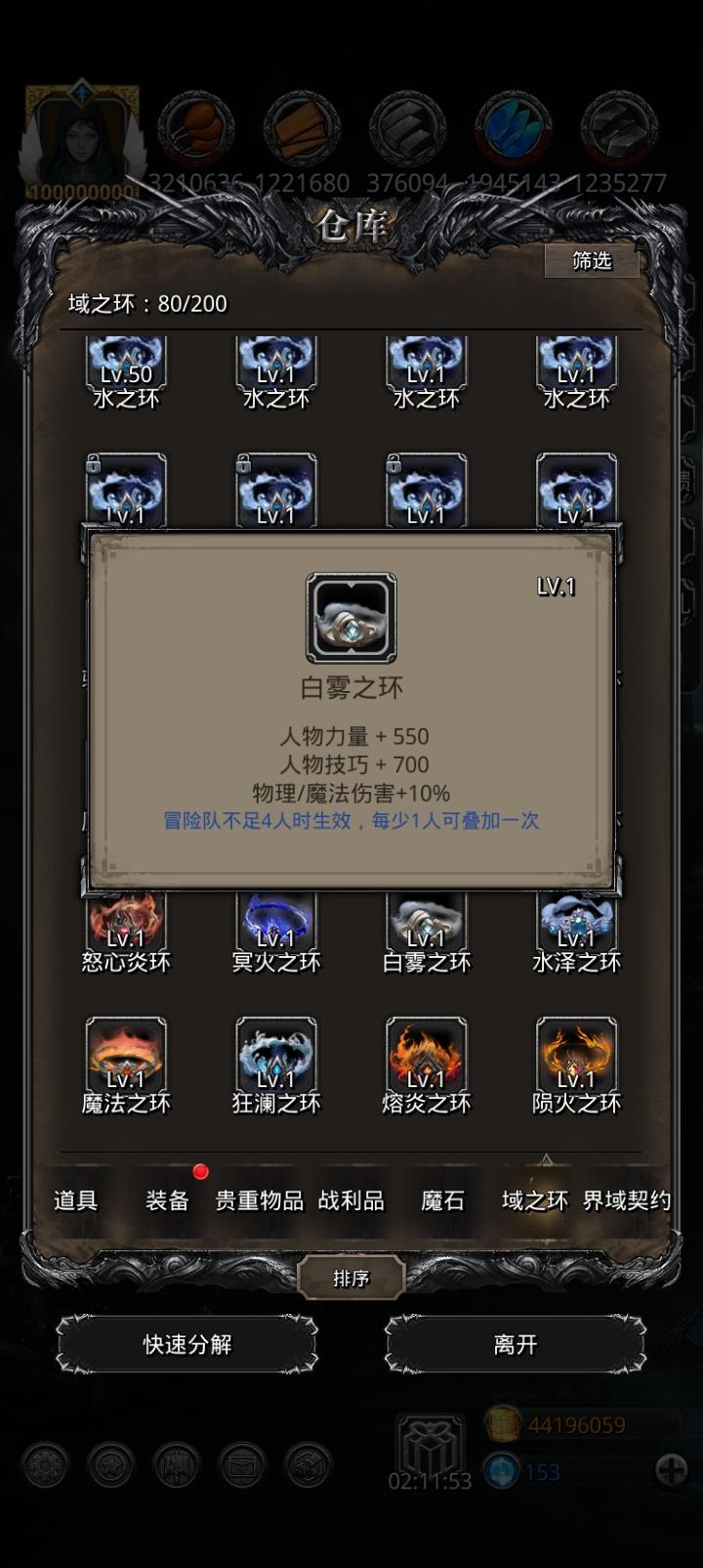没错,正是在下夜莺一直带的保底白雾之环,结果伤害差了100W,又连续打了好几次,还是打不过,继续翻攻略,问题出现在环身上,哈哈哈哈哈,成小丑🤡果断升了个孤儿持续空,打一把就过了深渊巨人罗尔的环配置:剩菜:孤儿持续空,2级契约祭祀:持续火,1级契约火法:承伤火环,1级群体盲目契约,打怪开了契约,没有未命中夜莺:孤儿持续空,2级契约🤡🤡🤡🤡🤡🤡🤡🤡🤡🤡🤡🤡🤡🤡🤡🤡