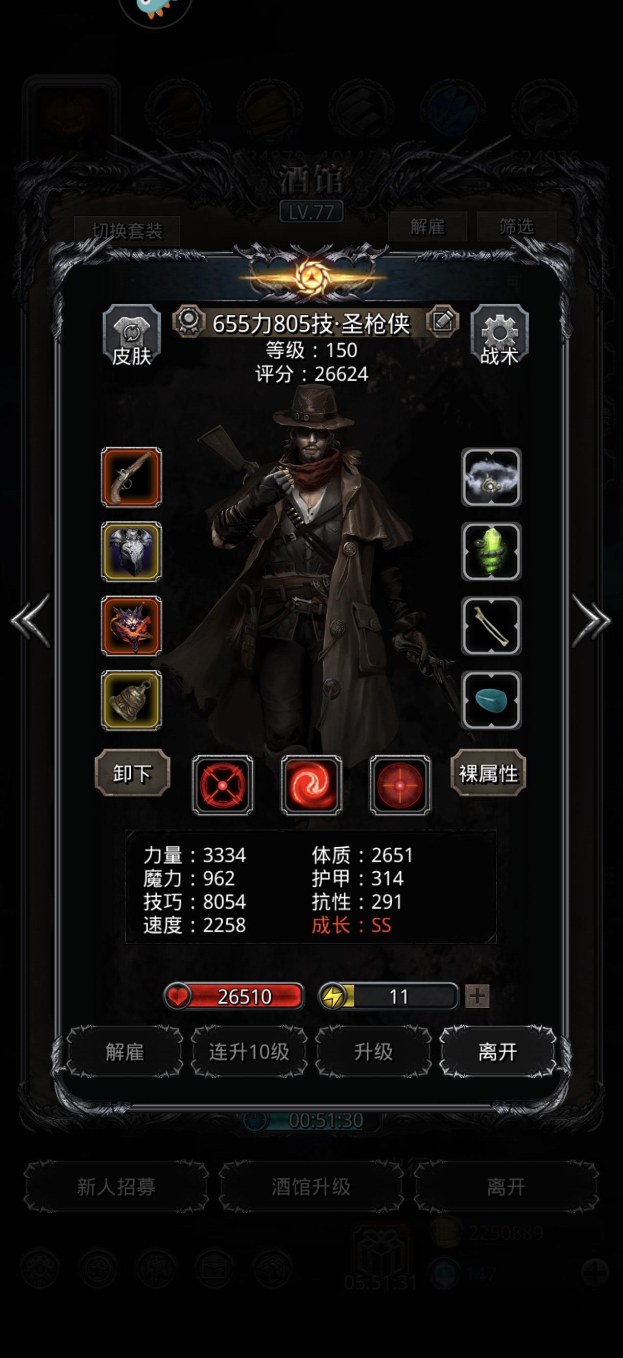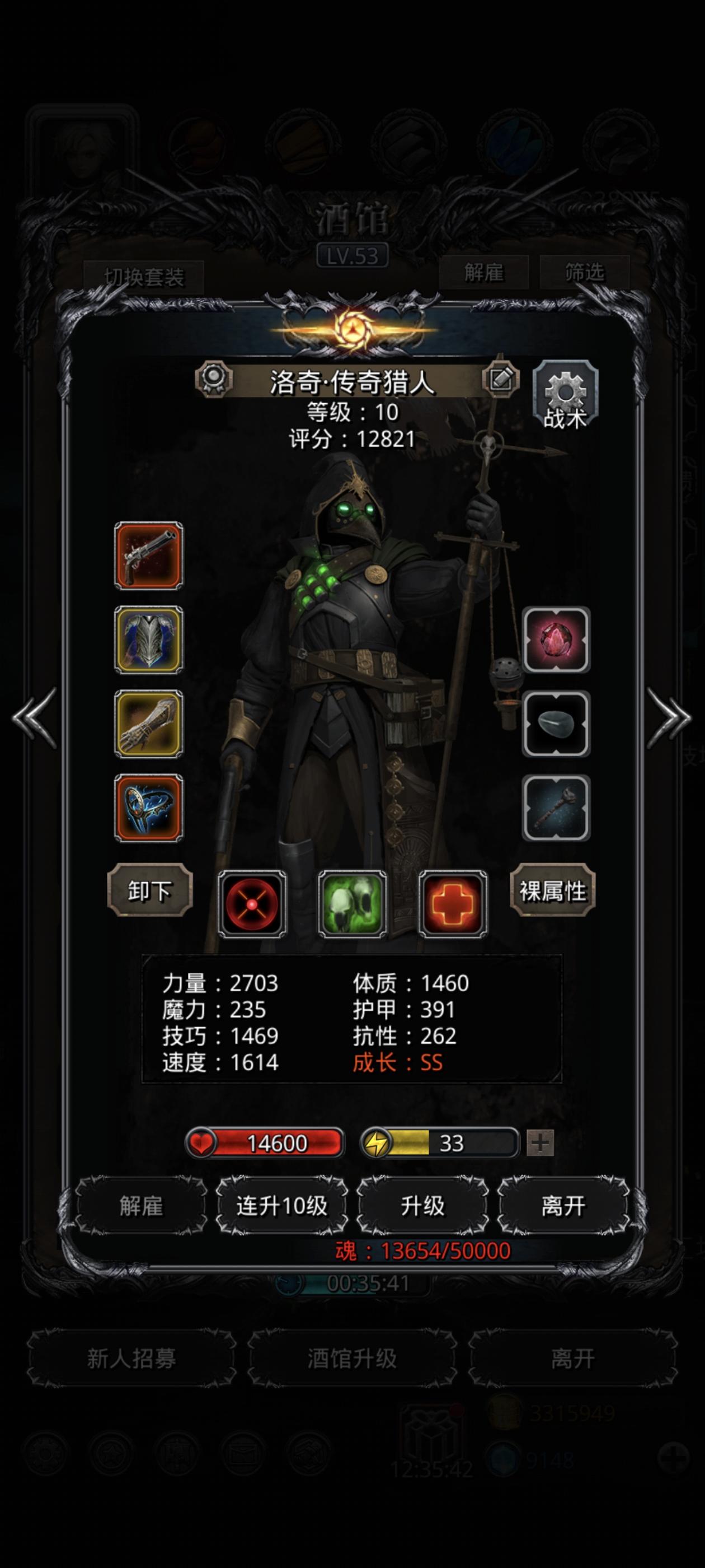 只要状态和复仇够,这BOSS就是个菜。中间有天忘打了,最后打战鬼又刷了2个88+的乌鸦,一次过了。乌鸦共4个88+,技巧战利品2个10、3个9、3个8+,遗迹状态90、复仇145,祭司加抗7W+完全溢出,到5W就行。战鬼这属性,看着比兽心提升不大,并且加技巧不加速,感觉更适合剑豪啊!