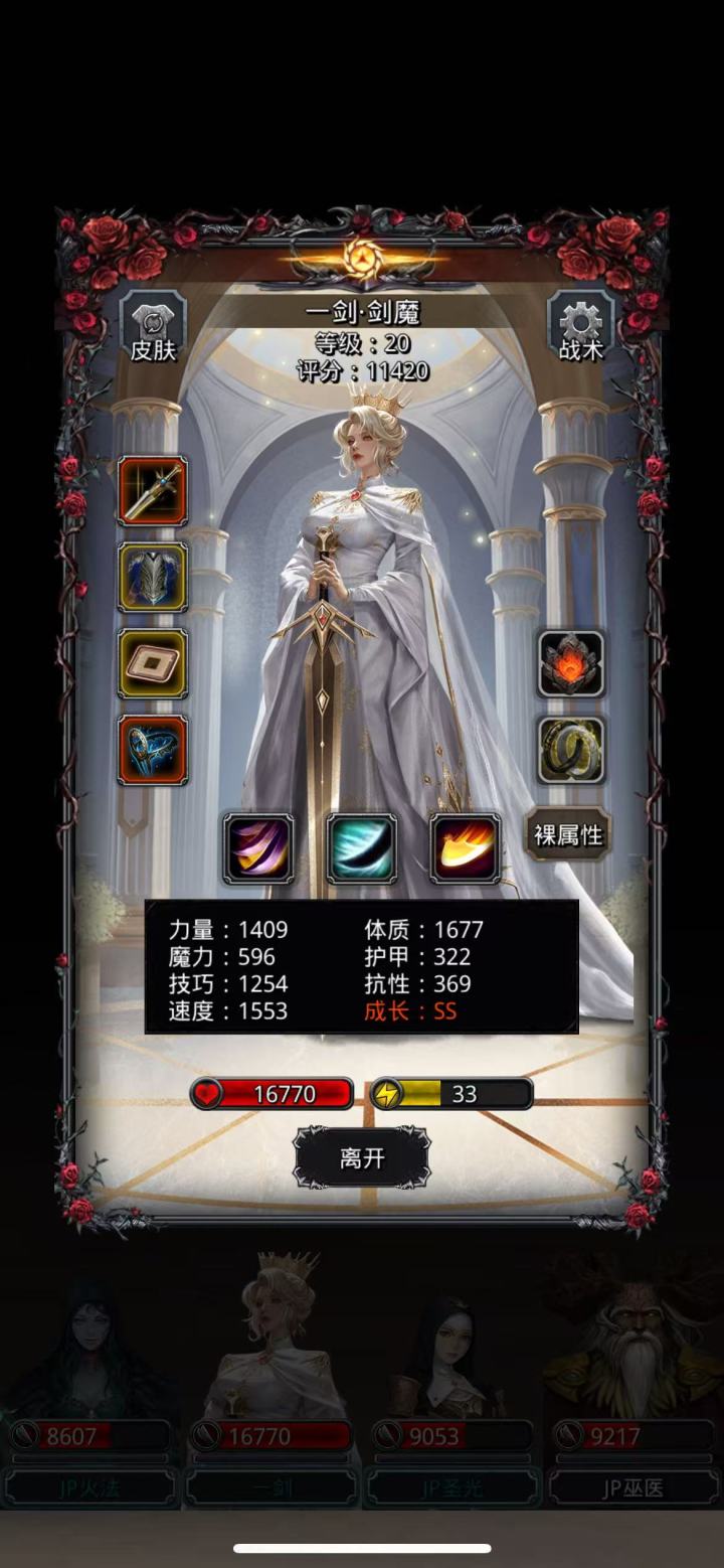 只要状态和复仇够,这BOSS就是个菜。中间有天忘打了,最后打战鬼又刷了2个88+的乌鸦,一次过了。乌鸦共4个88+,技巧战利品2个10、3个9、3个8+,遗迹状态90、复仇145,祭司加抗7W+完全溢出,到5W就行。战鬼这属性,看着比兽心提升不大,并且加技巧不加速,感觉更适合剑豪啊!