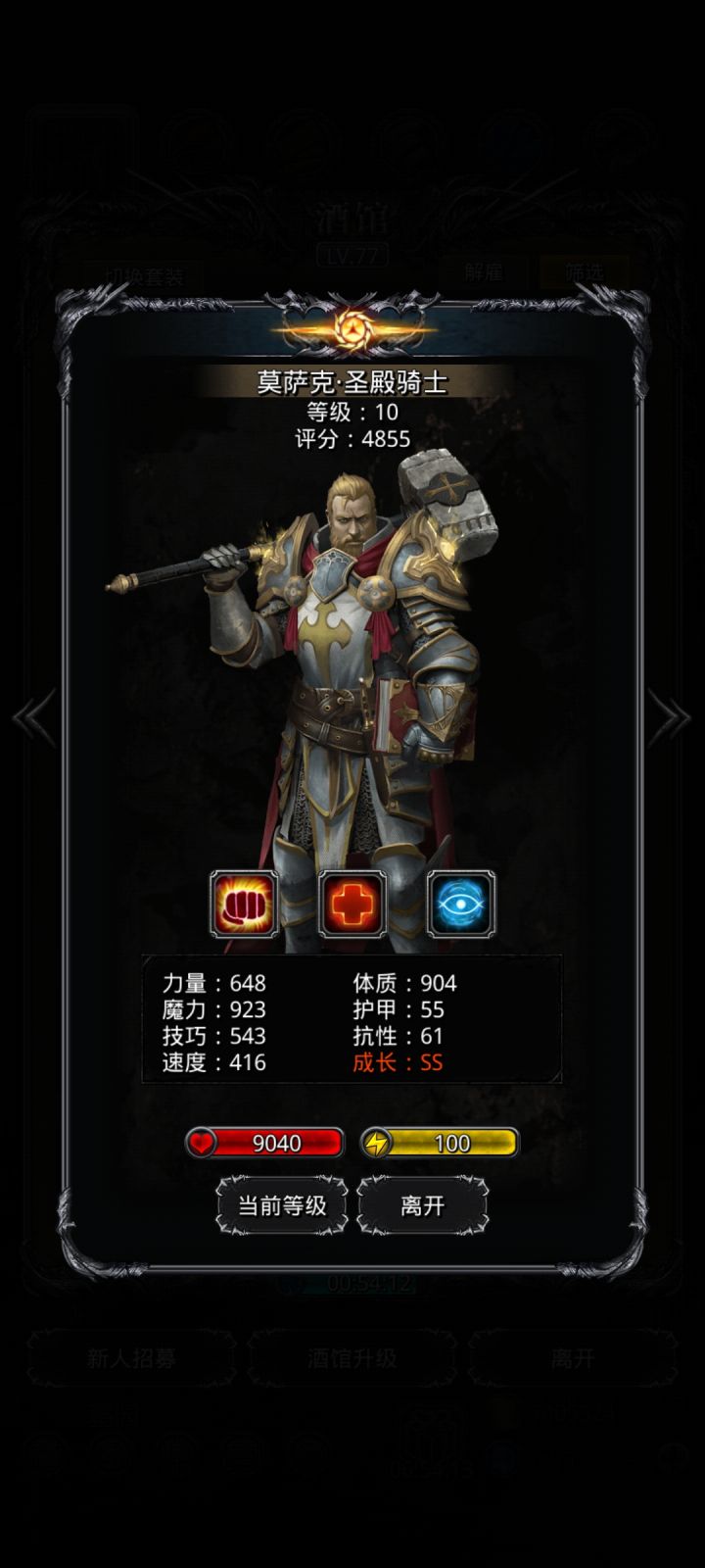 只要状态和复仇够,这BOSS就是个菜。中间有天忘打了,最后打战鬼又刷了2个88+的乌鸦,一次过了。乌鸦共4个88+,技巧战利品2个10、3个9、3个8+,遗迹状态90、复仇145,祭司加抗7W+完全溢出,到5W就行。战鬼这属性,看着比兽心提升不大,并且加技巧不加速,感觉更适合剑豪啊!