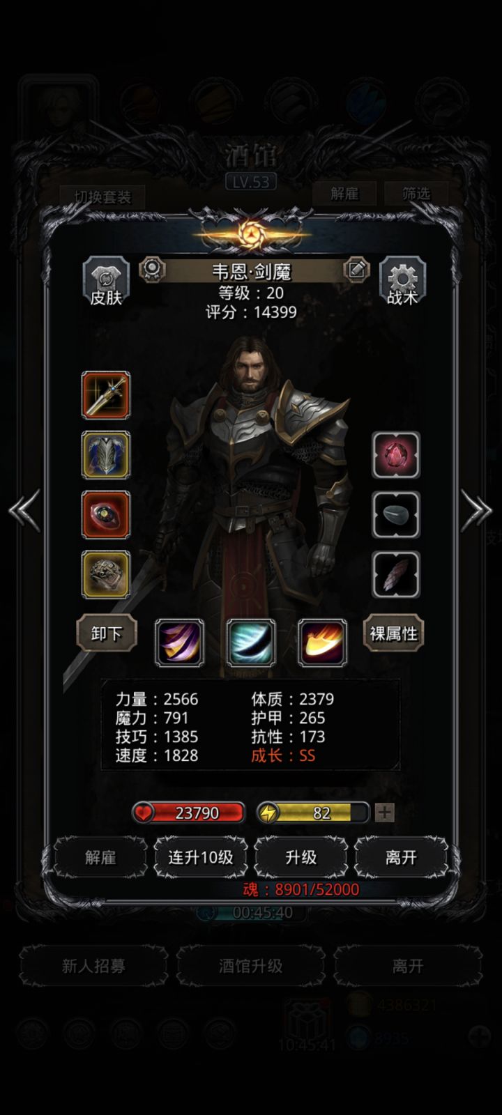 只要状态和复仇够,这BOSS就是个菜。中间有天忘打了,最后打战鬼又刷了2个88+的乌鸦,一次过了。乌鸦共4个88+,技巧战利品2个10、3个9、3个8+,遗迹状态90、复仇145,祭司加抗7W+完全溢出,到5W就行。战鬼这属性,看着比兽心提升不大,并且加技巧不加速,感觉更适合剑豪啊!