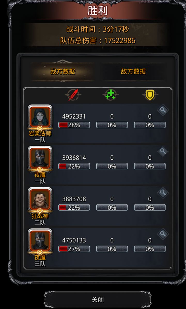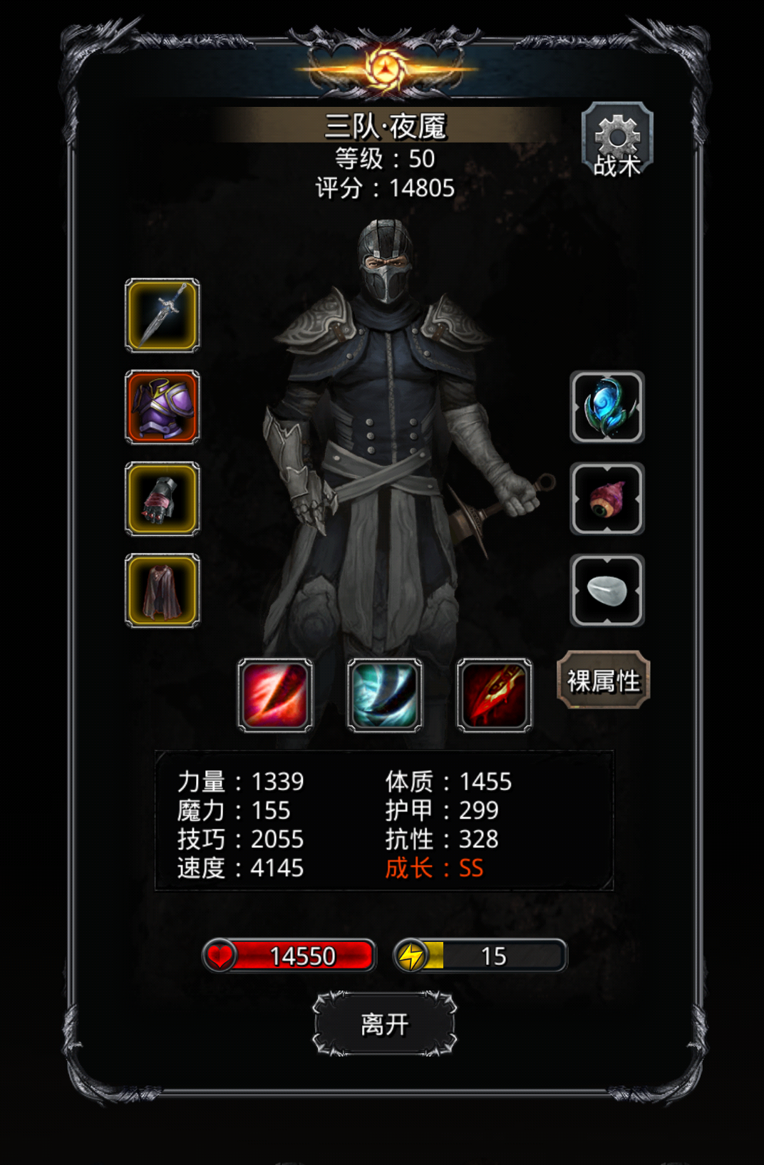 只要状态和复仇够,这BOSS就是个菜。中间有天忘打了,最后打战鬼又刷了2个88+的乌鸦,一次过了。乌鸦共4个88+,技巧战利品2个10、3个9、3个8+,遗迹状态90、复仇145,祭司加抗7W+完全溢出,到5W就行。战鬼这属性,看着比兽心提升不大,并且加技巧不加速,感觉更适合剑豪啊!