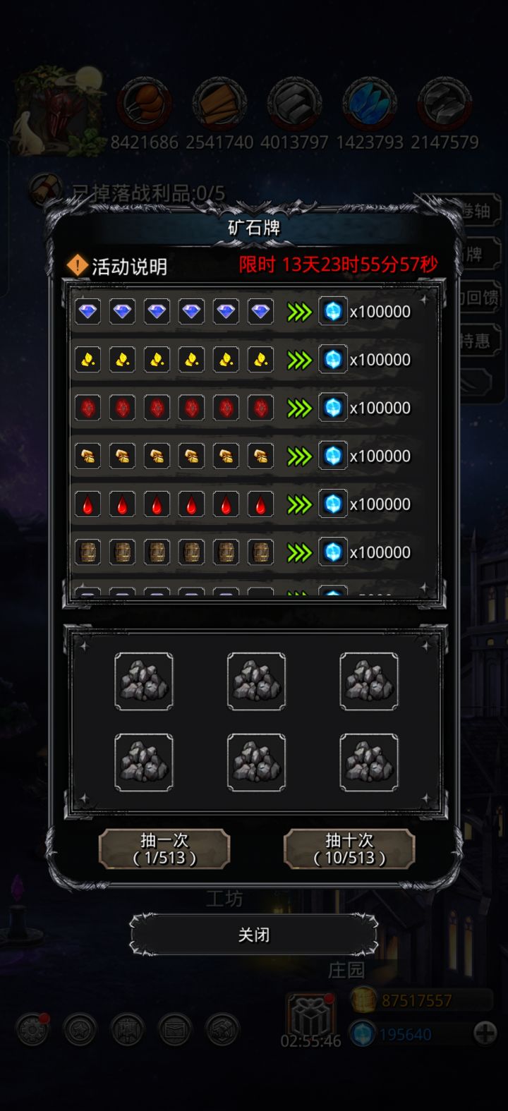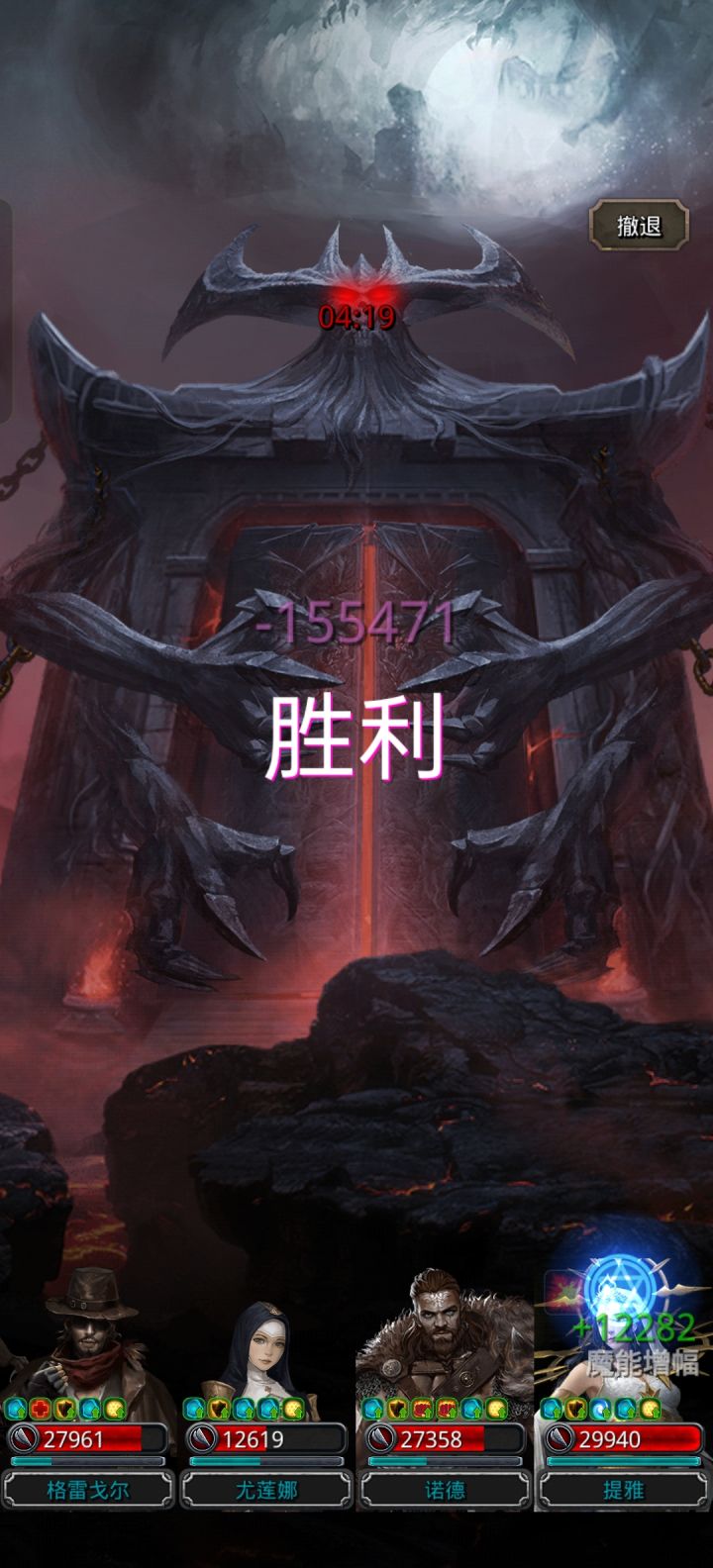 打第一次差50多,第二次看力牧空了两刀,都不抱希望打算最后一秒点撤退了,结果竟然过了,充了钱就是不一样
