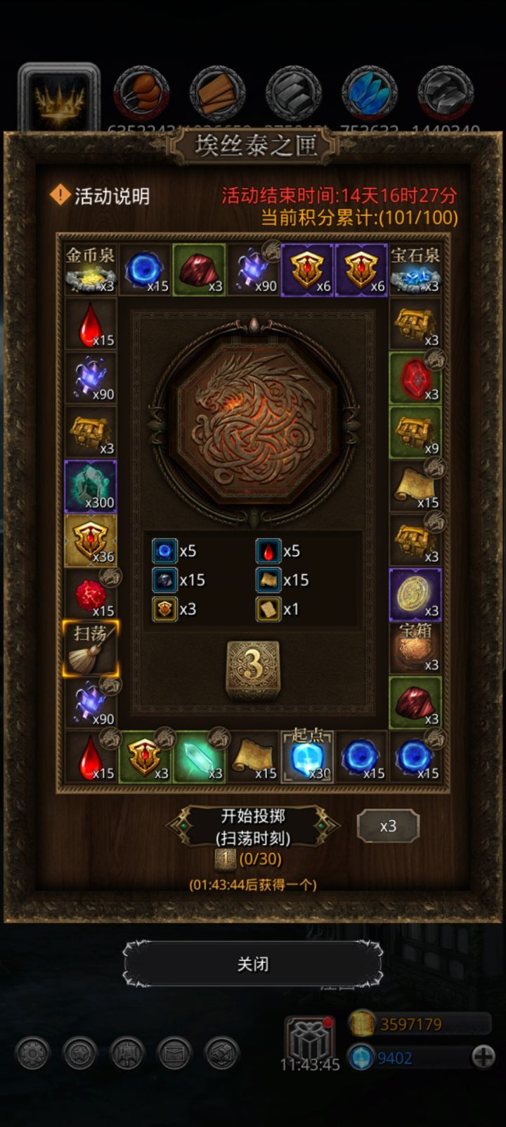 佳人们,朋友们,老铁们,美好的一年从tm赌博开始!多了不说,少了不唠,十亿金就哐哐往里造。(其实纯金币只攒了8e,但是四舍五入)先汇报下准备工作,市场里花费2.6e购得大型补给各约24000组,四大基础资源若干,稿子,透镜,回城卷轴若干。花费约70000荣誉碎片购得35000余强者血液。花费32000钻购得魂石32000枚。花费17w遗迹银币购得魂石若干。消耗干粮,富铁矿石,域晶箱等物资获得各类