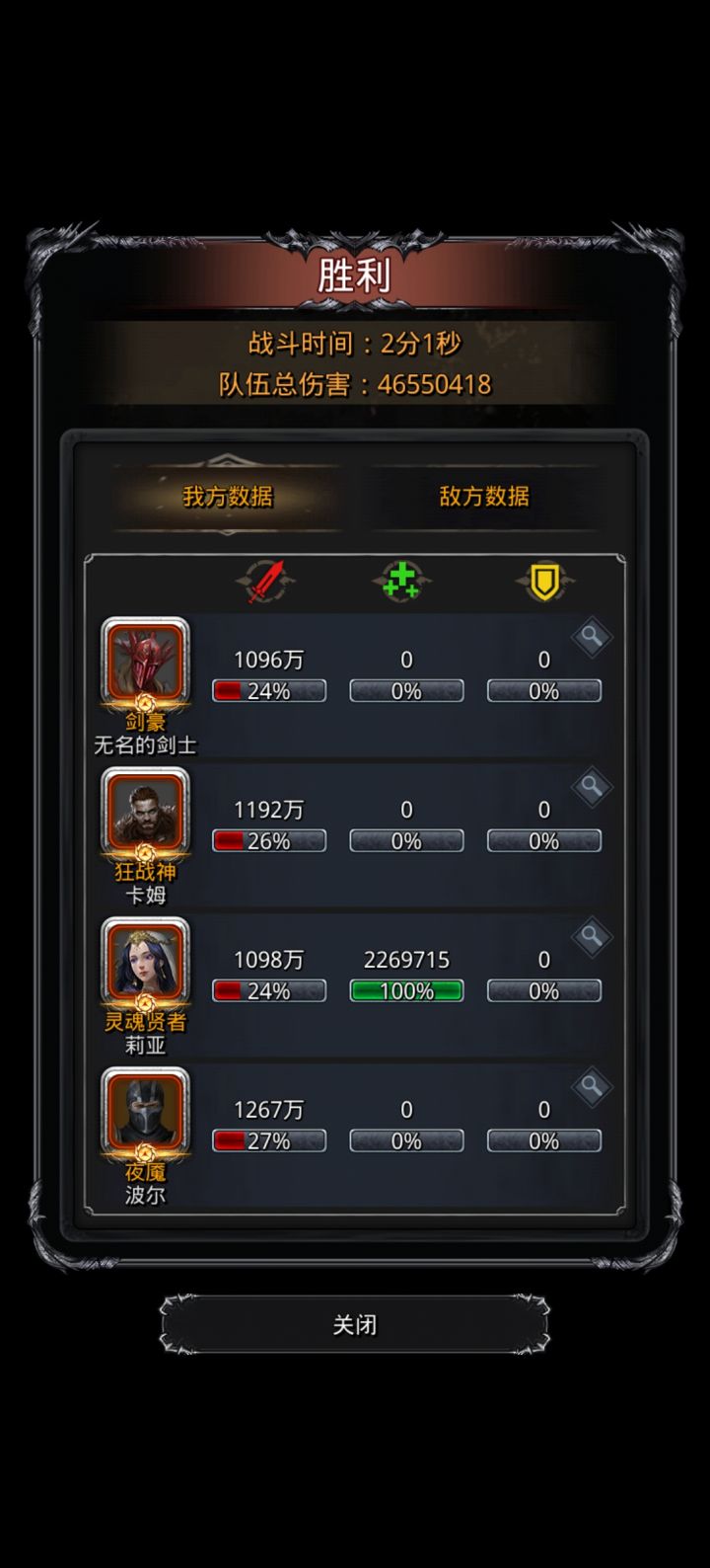 按照图中配置,血法完全不愁,剑豪战利品带了10吸血和命中,如果20%吸血更好,但是要兼顾下命中,不触发特效的情况下,剑豪掉2w血,神官就始终奶自己,神官在有自奶的buff下受伤11000左右,如果剑豪没触发特效,导致血量不足,神官就手动奶两次剑豪,老苏间隙差不多够神官奶3次,神官只要保证血量12000以上就行,大部分时候剑豪都不需要奶,4分多钟轻松拿下