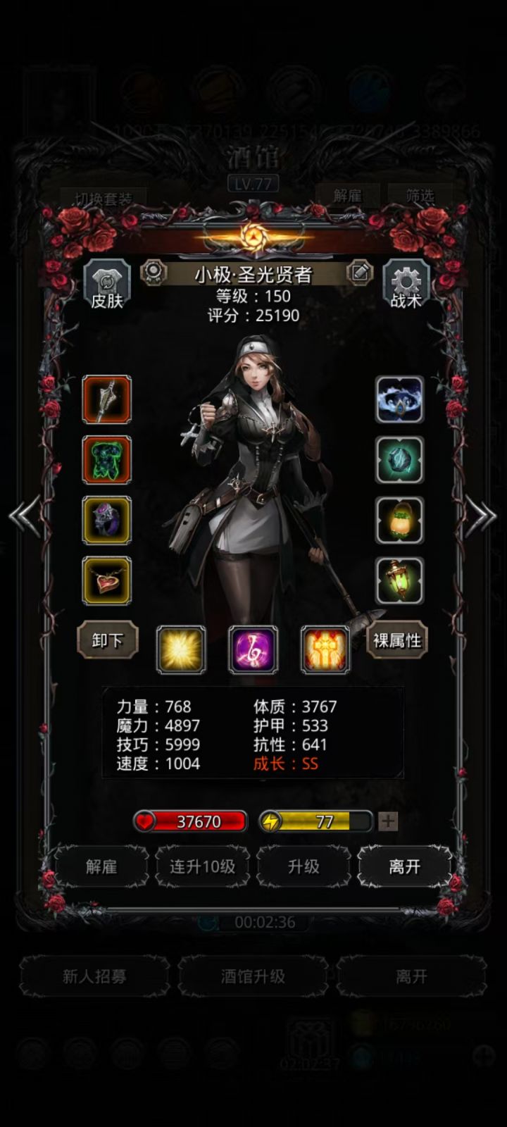 圣殿带10异常水环,15命中魔石,保证100%眩晕,boss 手动晕左,夜魇待命,第二发晕差1秒夜魇开自动,然后手动晕最右边,这套配置1分46秒打完,非常稳。
