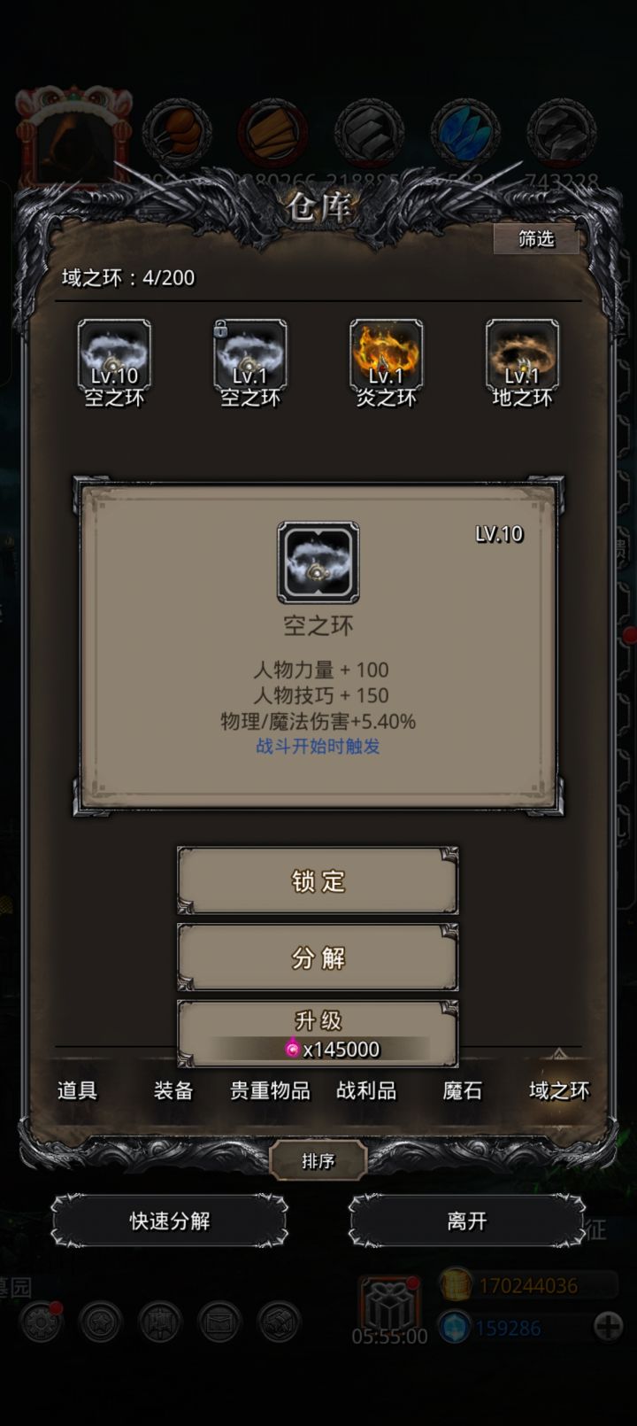 砸锅卖铁,东拼西凑终于凑够了两个环,但是,这种环得属性最低锁定是10嘛,有一个是9.6升50变成了10……是这样的话,这个初始加0.4,的就有勇气升了