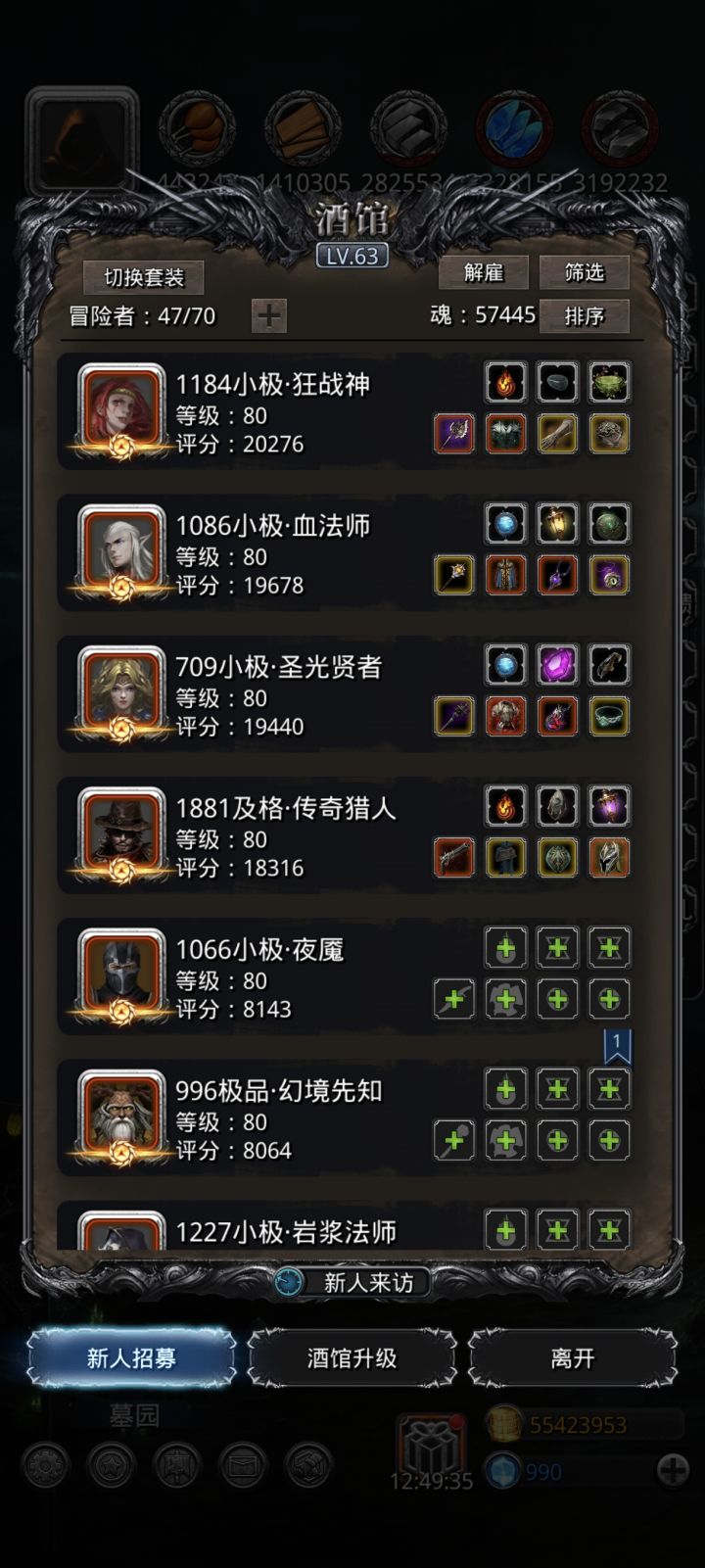 配装如图,全月百了才过!!!按照wiki的两个重伤法和黑骑硬抗法,打了很多天都过不去!!!距离过关最近的一次是wiki的第二个重伤法,即图上阵容,当时输出差一点,就差2w多的伤害把BOSS打死,结果BOSS直接团灭了我的冒险队!后面试了其他方法都不行,又回到这个阵容升级冒险者,直到两个月百+两个月90打满5次依然过不去……直到昨天全部月百再试,终于过了!!!打到最后还剩2-3w血时圣枪挂了,火