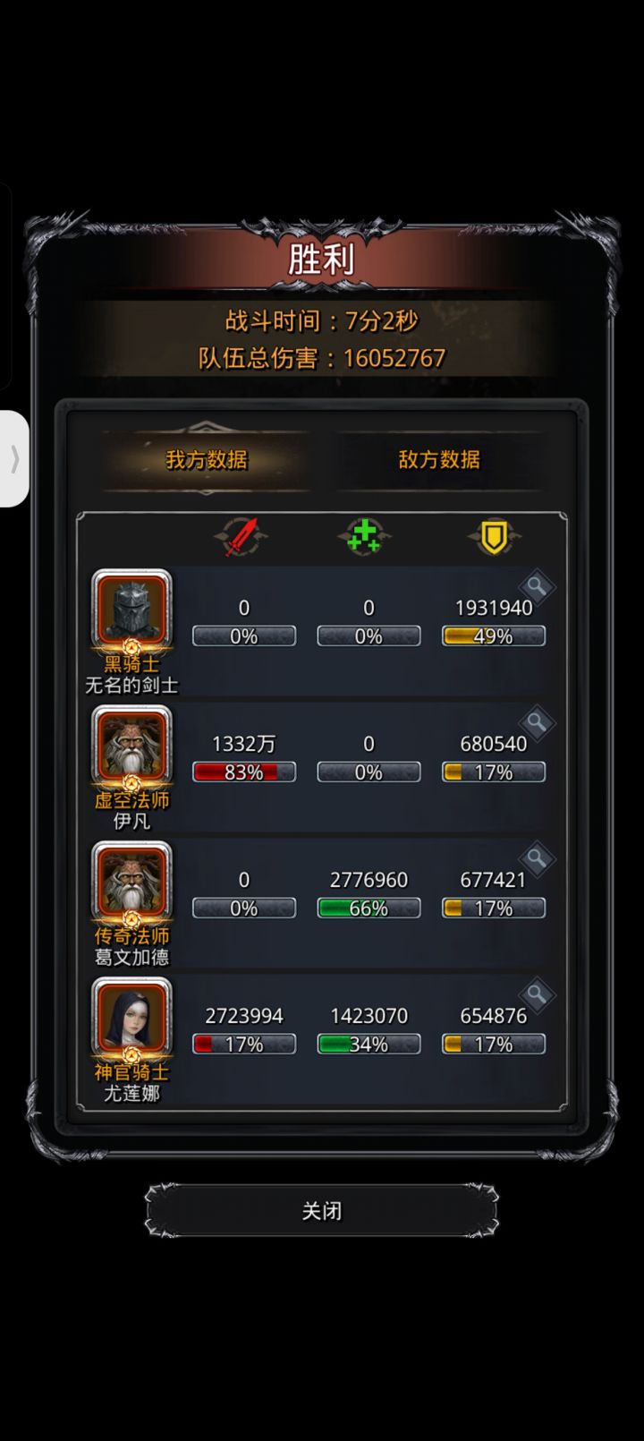 简单一句话,圣诫大人神力。直接7分2秒完成战斗。1,如果有好的体质先发,和神官用的魔力/技巧先发可以直接穿上了,再也不用刷脸等待群攻了。2,或者可以稍微降低一下虚空咒火的技能要求?(但不能确定最低是多少)3,神官在这里用圣诫替换萌新勋章是没问题的,自身有魔技,还有10%治疗效果,基本奶量无影响。4,圣诫的额外输出基本上可以抹平虚空咒火的命中影响(比如我这一次的没有圣诫过关率是92.89%)