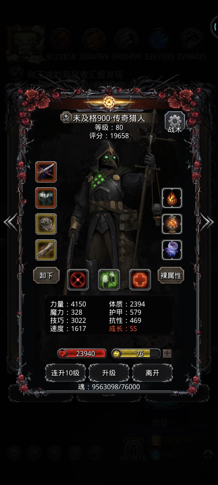 搞了5队刷英灵,5小时51万多,铁70万,金币10万,又收入40颗石头,5队刚好一个循环,有时路况好,还要等几分钟才能开始第二循环,去图1提款咯,400万魂,应该能把剩下几个都拉到100级了