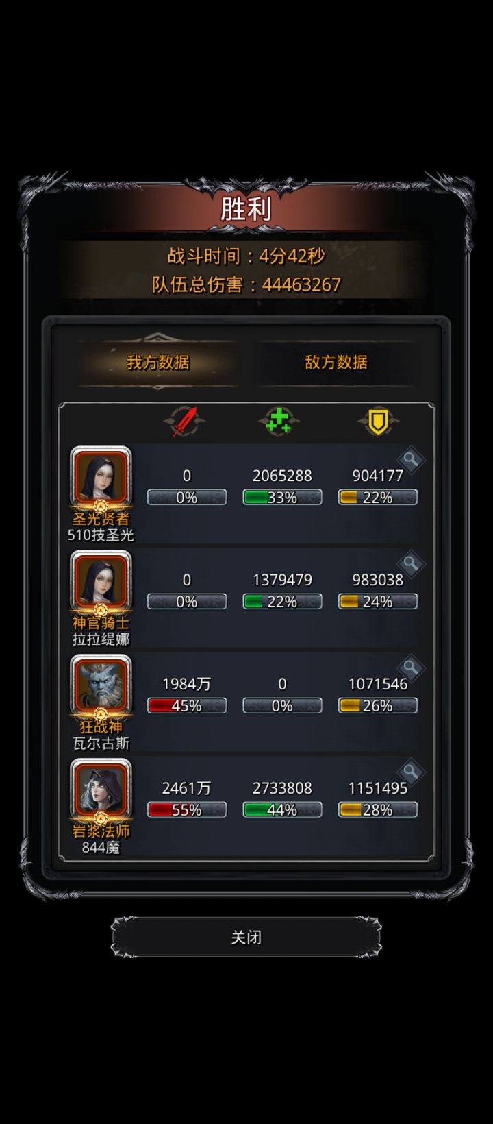 完结撒花,好耶新时代的俘虏,魂圣迹210级,刷脸16次过。(经典boss难度不如看门卡战力测试的)tips:属性不太够,所以蛮子带的角斗士加快通关(and暴毙)的速度,力量少了一大截所以火法就奶1打1了。奶骑要先发嘲讽,45/80,火法设置始终奶,蛮子手动点右手。打死右手后火法自动奶。击杀顺序:右左水气火土,最后打本体。低配骑士记得手动上嘲讽!!!(有两次打完左右手,嘲讽断了,火法被