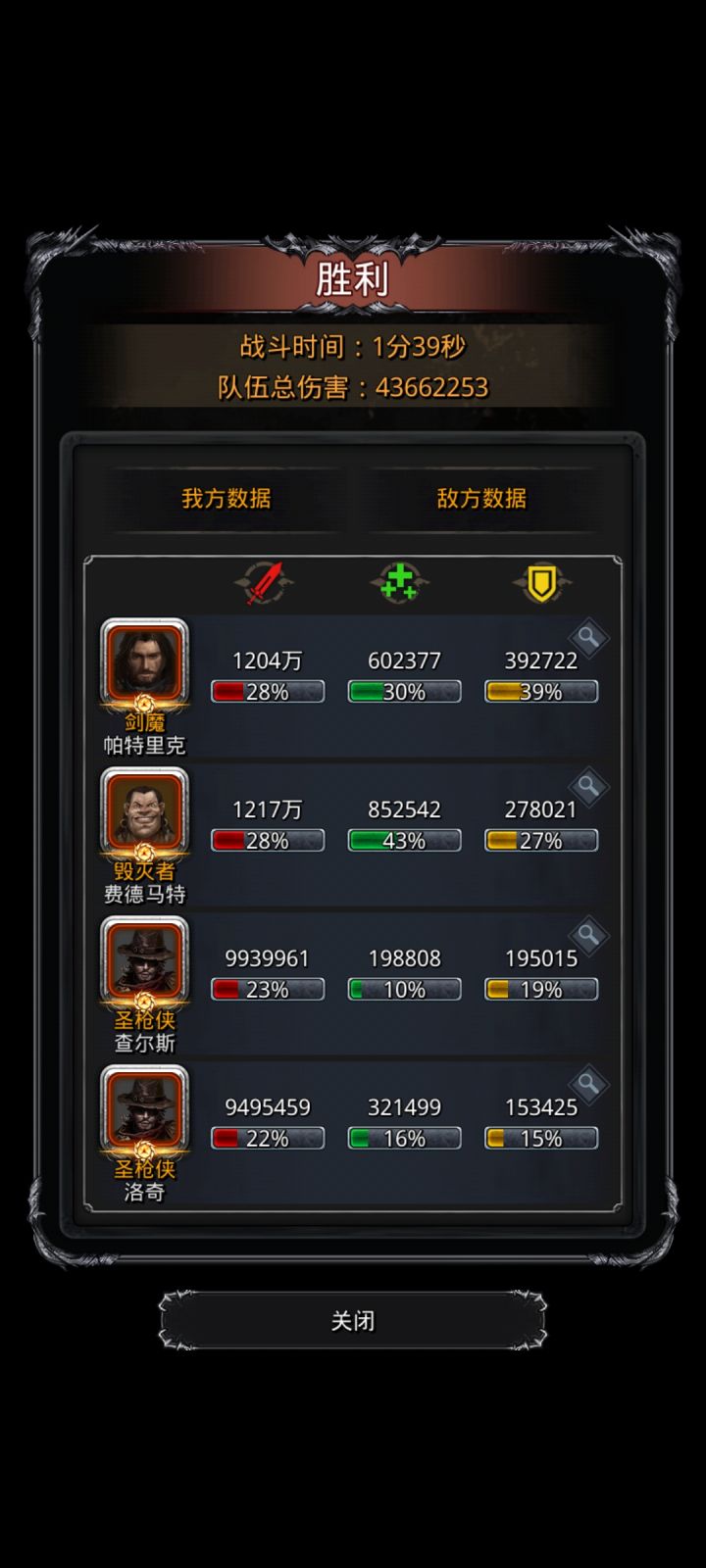 从图41开始真是刷得够够的:进化先驱风暴,械灵母体,小白龙,白金龙,冰龙,西比拉,一个个把脸刷破,虐得想吐,不知道后面是不是还有这些变态的数值怪。还是蛮子给力,坚挺的站到最后砍出决胜一刀,灭掉这变态的西比拉女妖!双圣枪双单吸,没有氪金技吸和物伤吸,只有野生力吸。剑魔纯物伤,没有单吸,毁灭纯力先发,这套配装都不用补命中,全都有95以上的命中。不过还是得刷脸老妖婆多单攻!