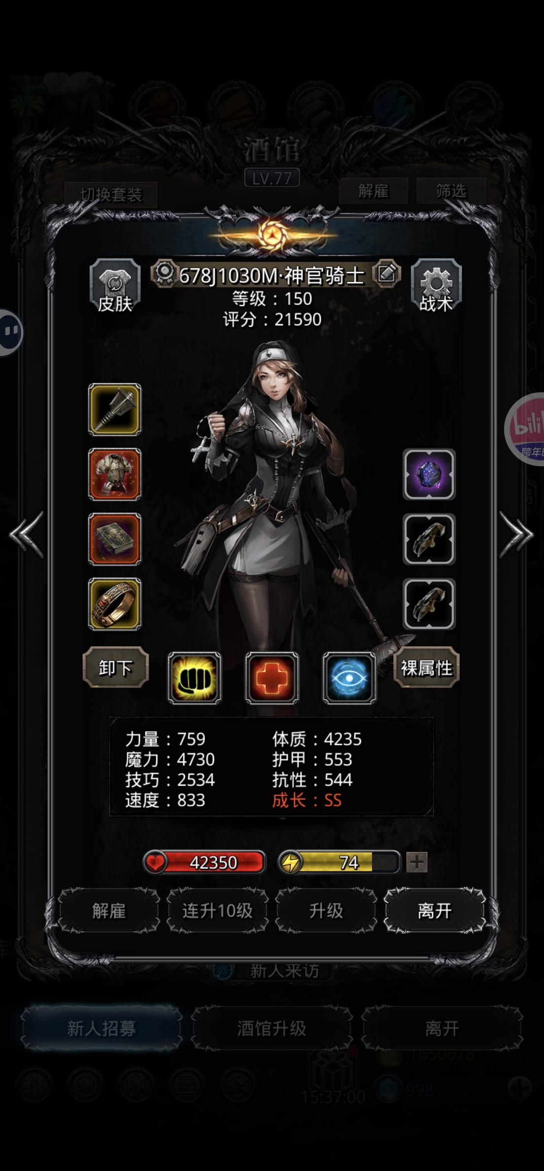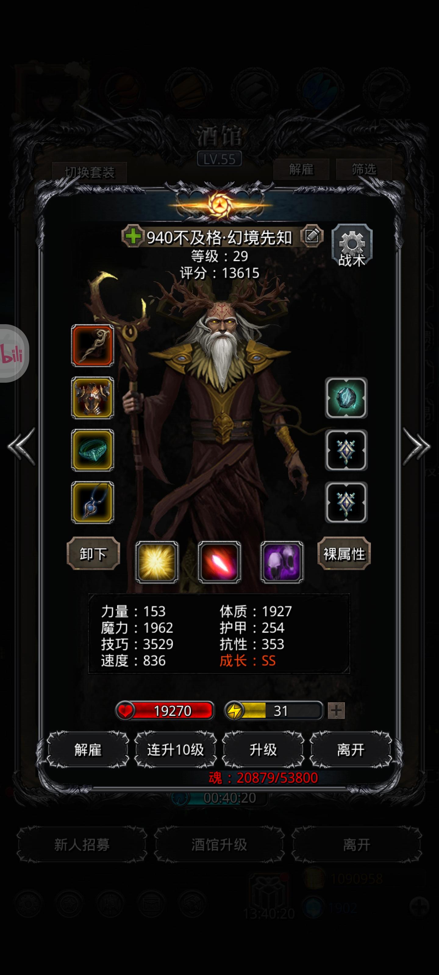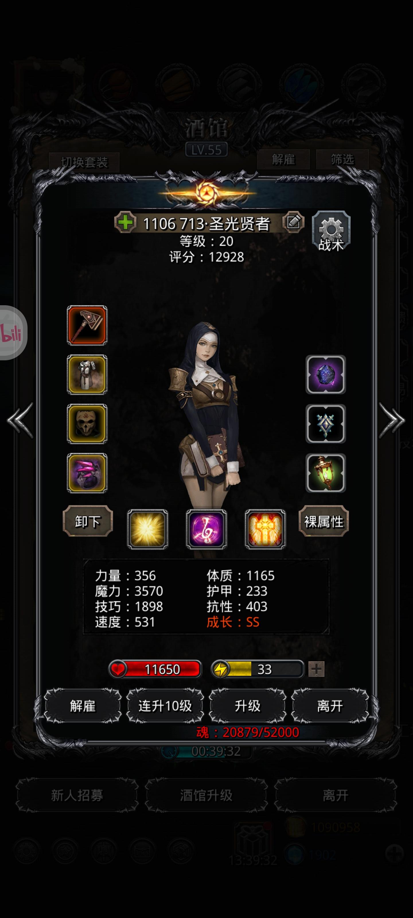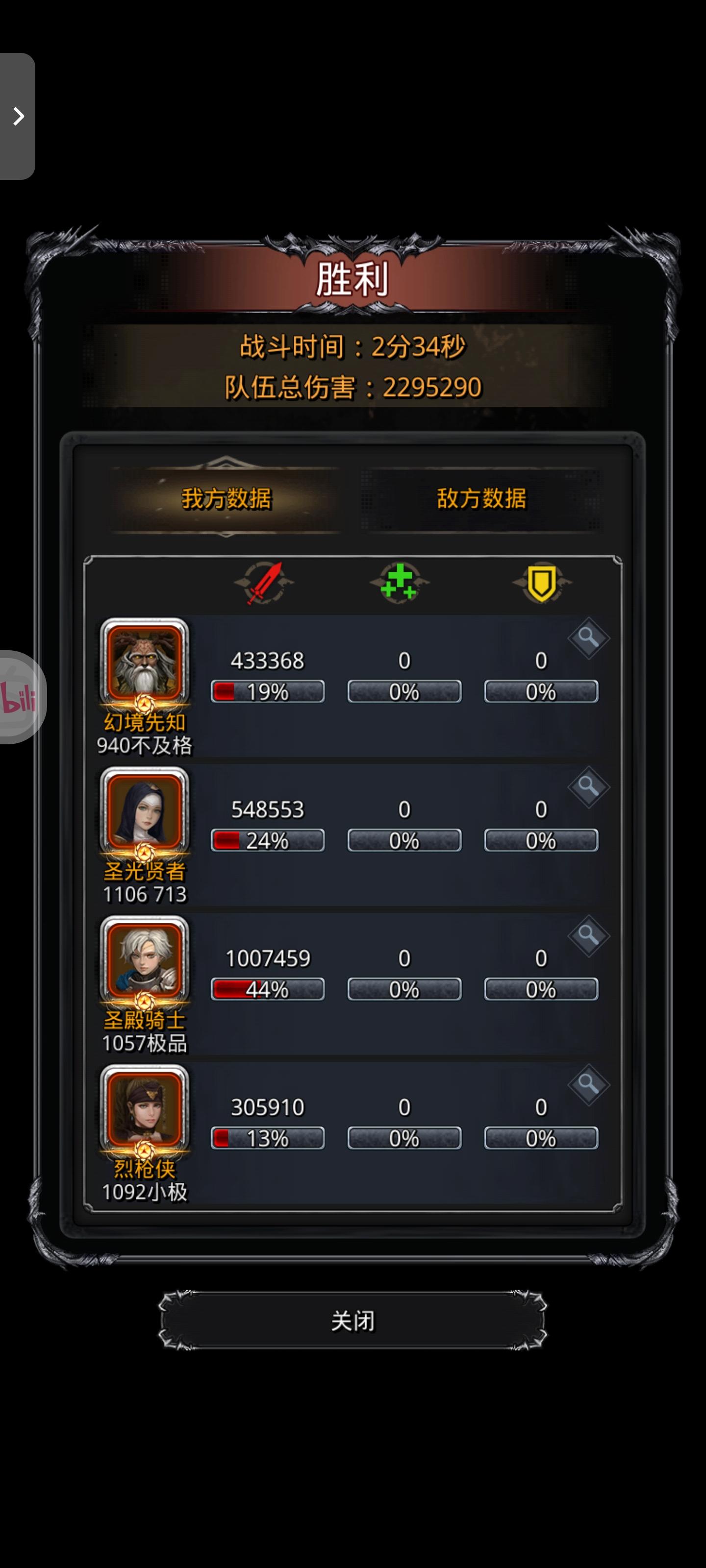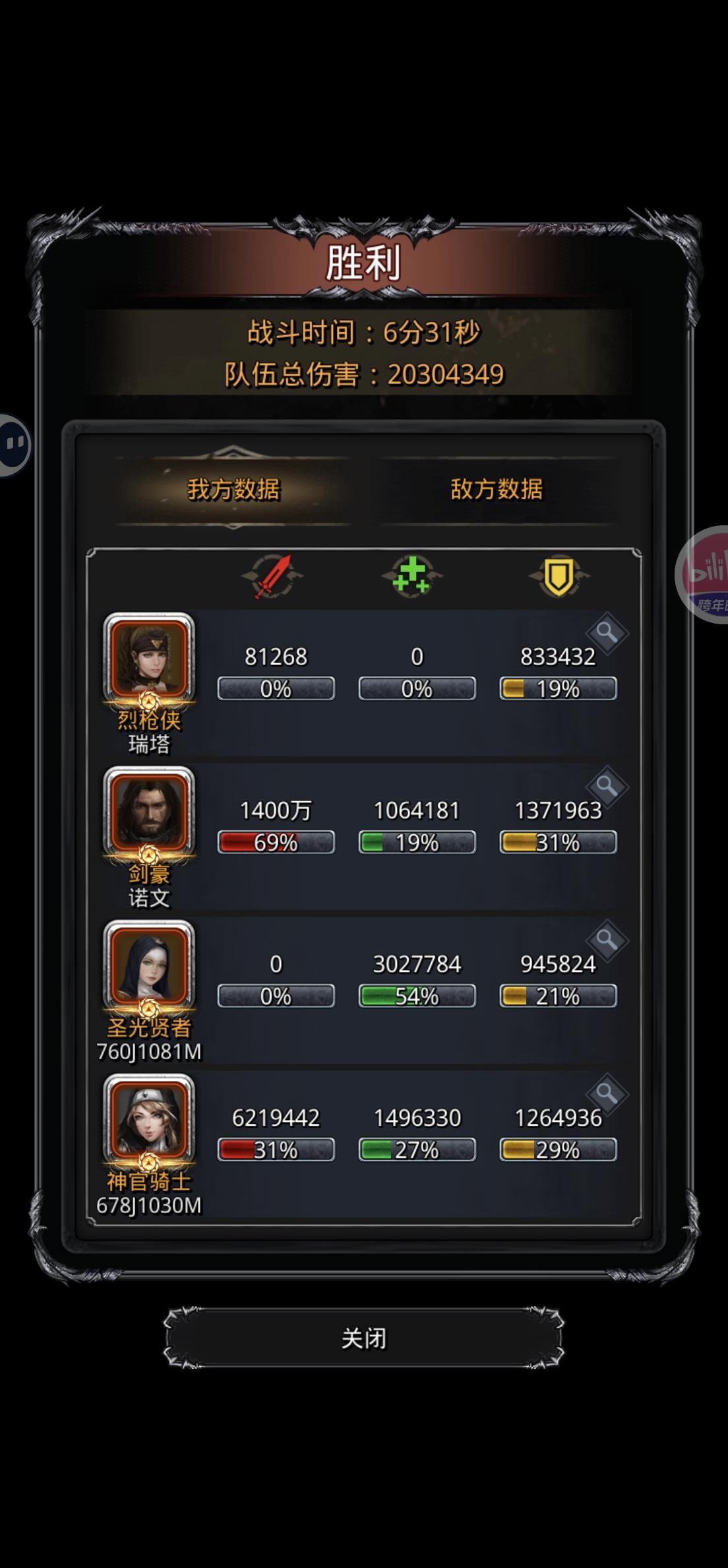 B战第二套(我没上剑豪,剑豪力速凑不够,可以自己在圣迹测试一下)1.夜魇装备就匕首和神恩护符,魔龙之心是必须的,其他有没有无所谓2.不用在意什么猎人,狂战是否同步3.法师要满命,装备无视是够的操作:1.夜魇直接摆,三个全关,开局要赌减技2.另外三个人打到300-500万停手毁灭和猎人,火法单修3.自己计算毁灭+猎人是多少伤害,我是101万4.火法把野灵打到102-105万左右,手点