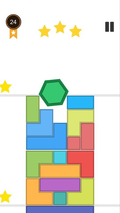 游戏主界面最顶上是一个六边形,下面承载各边形的积木,那么你可以利用点击下面的积木,让六边形无法掉下去,一直都保持在积木上面不掉下来即可。简单的玩法,考验的你IQ来罗,敢来挑战你的极限吗?