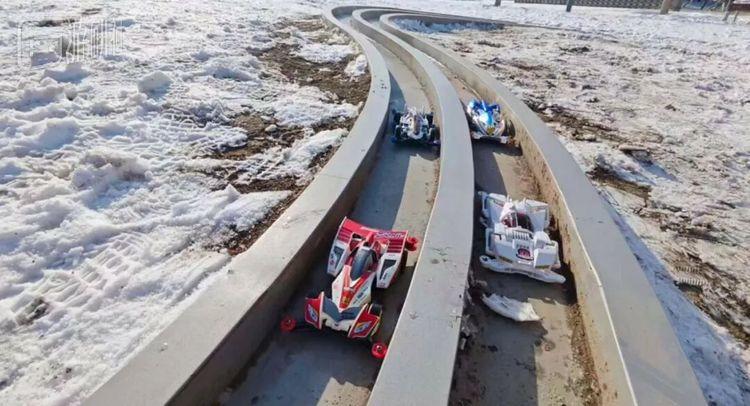 曾经与现在的孩子们汇聚在一起,让一条跑道变得完整。北京的温榆河公园一角,在这个冬天格外热闹。这里原本只是一个几十平见方的草坪,附近有几棵掉光了叶子的树。但即便还没走近,你就能在这里听到一些不常出现在公园里的声音——那是迷你四驱车划破空气一般的马达声。12月初的时候,我就听说了“北京有个公园建了条四驱车跑道”,去过一趟这条跑道。当时在周末中午的黄金时段,差不多能有七八个车友聚在一起跑车,互相