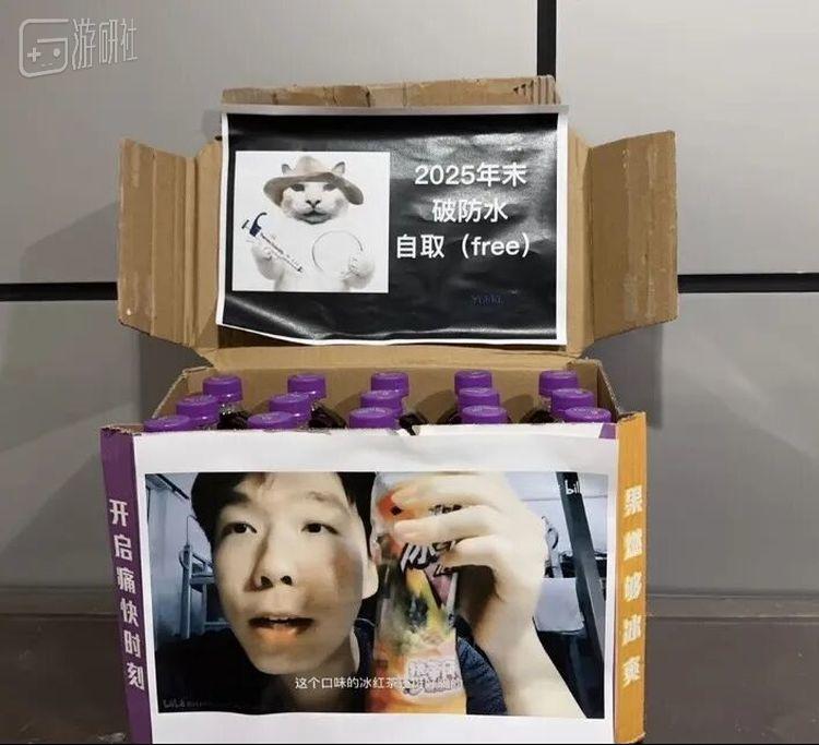在期末将至的这段日子里,一种奇观开始出现在各大校园的角落里——在学生聚集的地方,会有人自发建设起一种考试周限定的公共设施:“破防水“自取箱。它的结构极其朴素:一整箱饮料,上面多半还贴了一张神秘男子的照片,同时会备注着“见者有份,饮料随意自取”等内容。而箱中被称为“破防水”的,并不是什么功能饮品,而是热带风味的冰红茶。这种考试周限定的公共设施,虽说看上去像是冰红茶商家整得什么宣传活动,但实