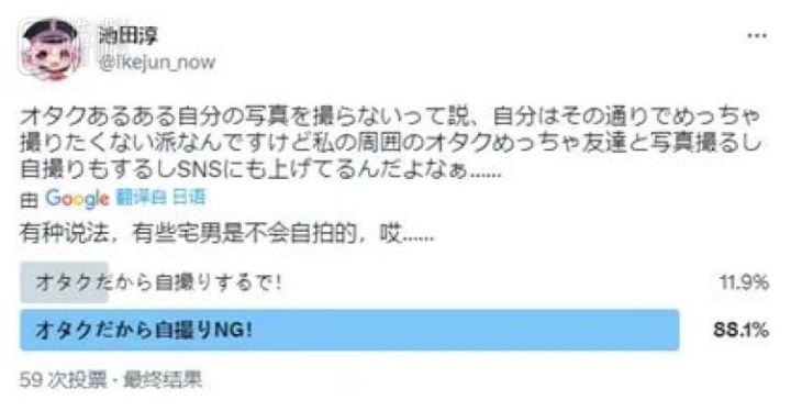 “阿宅从不拍自己”,一直是日推上的日经话题。twitter@ikejun_now它的响亮程度,犹如“兽人永不为奴”,人尽皆知。每隔一段时间,就会被拿出来讨论一次。就在上周,一位推特网友又一次引爆了这个话题。这位叫作“とーや”的特摄宅突然有感而发:“自己已经十年没拍过正经照片了。如果突然去世,甚至没有可以作为遗像的照片。”于是,她专门前往特摄迷心中的圣地栃木县岩船山,为自己拍了一张遗照。