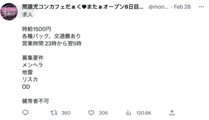 在各式「女仆咖啡厅」如此泛滥的日本,新店家的出现已经算不上什么大事,可一家名为「問題児コンカフェ」女仆咖啡厅的开业,却成功在最近引起了不小波澜。「問題児コンカフェ」或可译成「问题儿童咖啡厅」,它是一家概念型女仆咖啡厅。所谓“概念型”,是指这家女仆咖啡厅与常规的同行不同,有着较为另类的主题。而正如它的店名,「问题儿童咖啡厅」主打的是“病娇女仆”。在二次元盛行的日本,“病娇”一直以来都是极为受