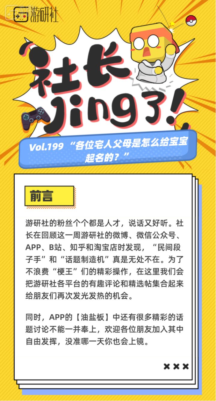 【社长jing了!Vol.199】“各位宅人父母是怎么给宝宝起名的?”
