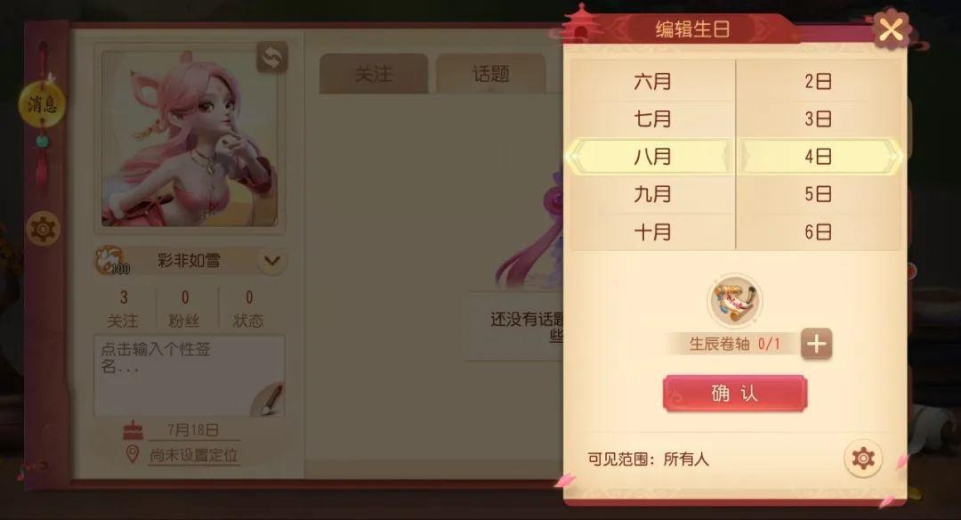 当当当当~又到了小记者奶文的上线时间,听说最近三界新上线了全新生日系统,不仅能够收获神秘生日大礼,还能为好友庆生,仪式感拉满!如此有趣的玩法奶文怎么能错过?赶紧整理了一份《三界寿星指南》,大家也快跟随奶文的脚步一同前往看看吧! 生日系统及相关玩法将对等级≥30级的少侠开放。作为三界一份子,各位少侠可以前往【个人空间】左下角生日界面设置自己的生日日期,初始生日默认设置为各位少侠的创角日期 各位少
