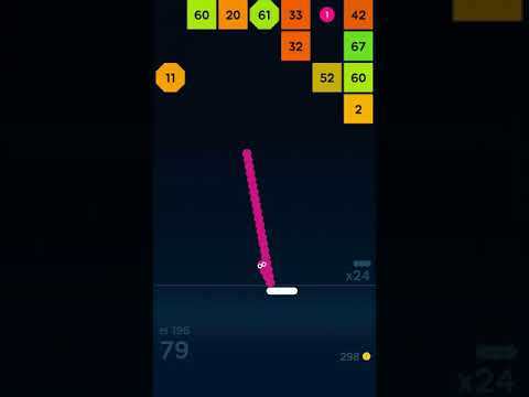 随着砖块的下降,试着调整角度,收集更多的小球,让小蛇变长,打破所有的砖块!