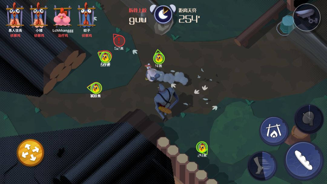 针对《危机之夜》游戏即将进行一波测试,我在这里简单在这里介绍一下操作。 好让玩家在测试的时候,不至于一面懵逼。 那就先让农场主人——里昂开始吧,进入游戏,里昂立即就开始抓鸡。 控制方向移动。 攻击拍打逃亡鸡,击毁障碍物。 加速技能:能让里昂加速移动一段距离。 处刑技能:将重伤倒地的逃亡鸡,架起进行烧烤。 感应技能:立即侦查出所有逃亡鸡的位置。 打开,查看地图。 表示正在被破坏的电机距离位置