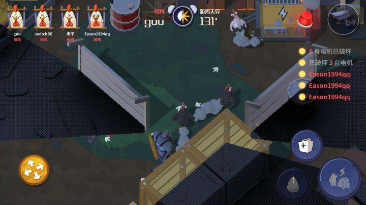 针对《危机之夜》游戏即将进行一波测试,我在这里简单在这里介绍一下操作。好让玩家在测试的时候,不至于一面懵逼。那就先让农场主人——里昂开始吧,进入游戏,里昂立即就开始抓鸡。控制方向移动。攻击拍打逃亡鸡,击毁障碍物。加速技能:能让里昂加速移动一段距离。处刑技能:将重伤倒地的逃亡鸡,架起进行烧烤。感应技能:立即侦查出所有逃亡鸡的位置。打开,查看地图。表示正在被破坏的电机距离位置