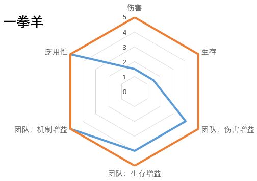 一、技能效果 1.1. 被动提供攻击buff的效果可以几乎永续了,可以视为第二回合开始一直常驻30%全队攻击力的效果(减员导致热度不足可能会断),比不上界蝴蝶的被动,但一拳羊的特殊还有24%加伤,综合加伤能力比蝴蝶好。 1.2. 特殊技能和大招换了出手顺序,现在是先开大,第二回合开特殊。开局开大招,给全队一个大盾并击飞目标,击飞改为2回合,相当于强行跳过目标一个回合,终于有了实际收益,且击飞效果配