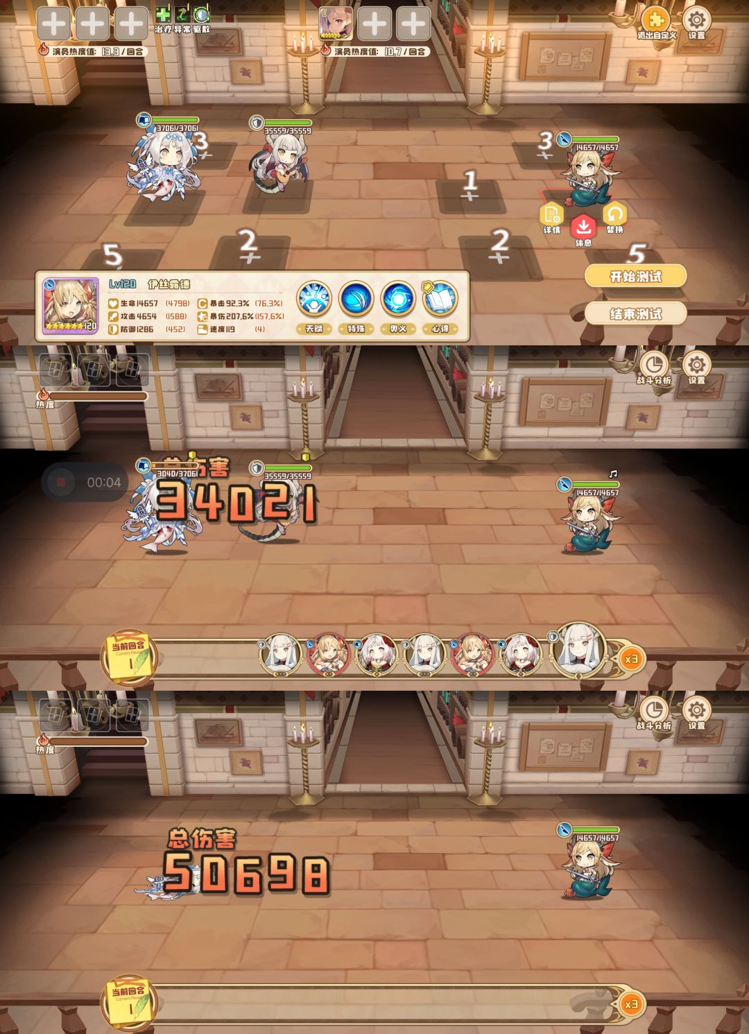 1.装备推荐,爆破套,对血量高于自身的目标伤害+35%。 (也有用魔化套的大佬,伤害比爆破高一点点。) 2.技能推荐,建议b路线,和暗杀精通(对后排增加15%伤害那个),至于无视防御那个被动没啥作用,对比过,没暗杀精通加成的伤害高。 3.宝石推荐:全暴伤宝石。 4.剧照推荐:剧照一,阅读时间,伤害提了很多,满的话比较稳定秒杀脆皮。 机制一:人鱼开战前释放的奥义,不会打自标蒂娜(红龙),所以可以秒脆