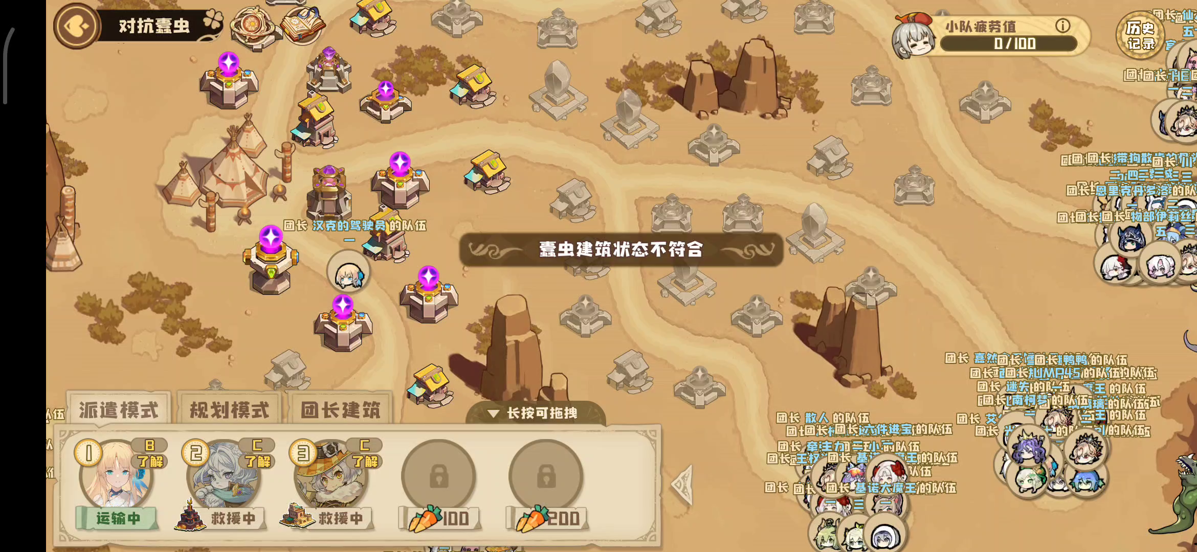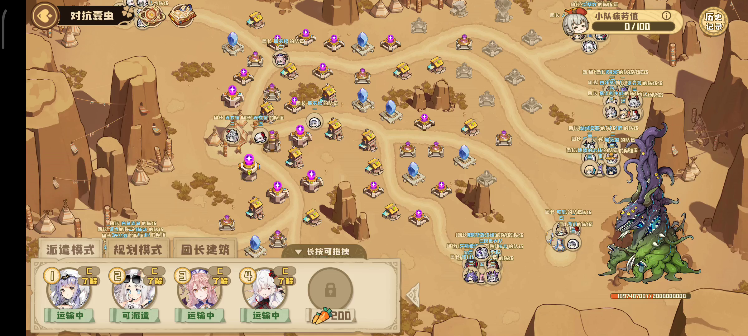 首先囊虫在哪!?我只看见一堆堆人头聚着,就这几个地方还已经满了,我都不知道干什么。小队不能攻击boss,怎么滴?要等它自己生老病死是吧!?我去运输东西,先不说慢的一笔,你退出去重新进就重头走起了,还不能退出,得一直看着走,一堆不能点的建筑,显示能运输的建筑又说建筑状态不符合,我到了运输地点又不知道干什么,所以这个活动是干嘛!?就看着小人走来走去的是吧。