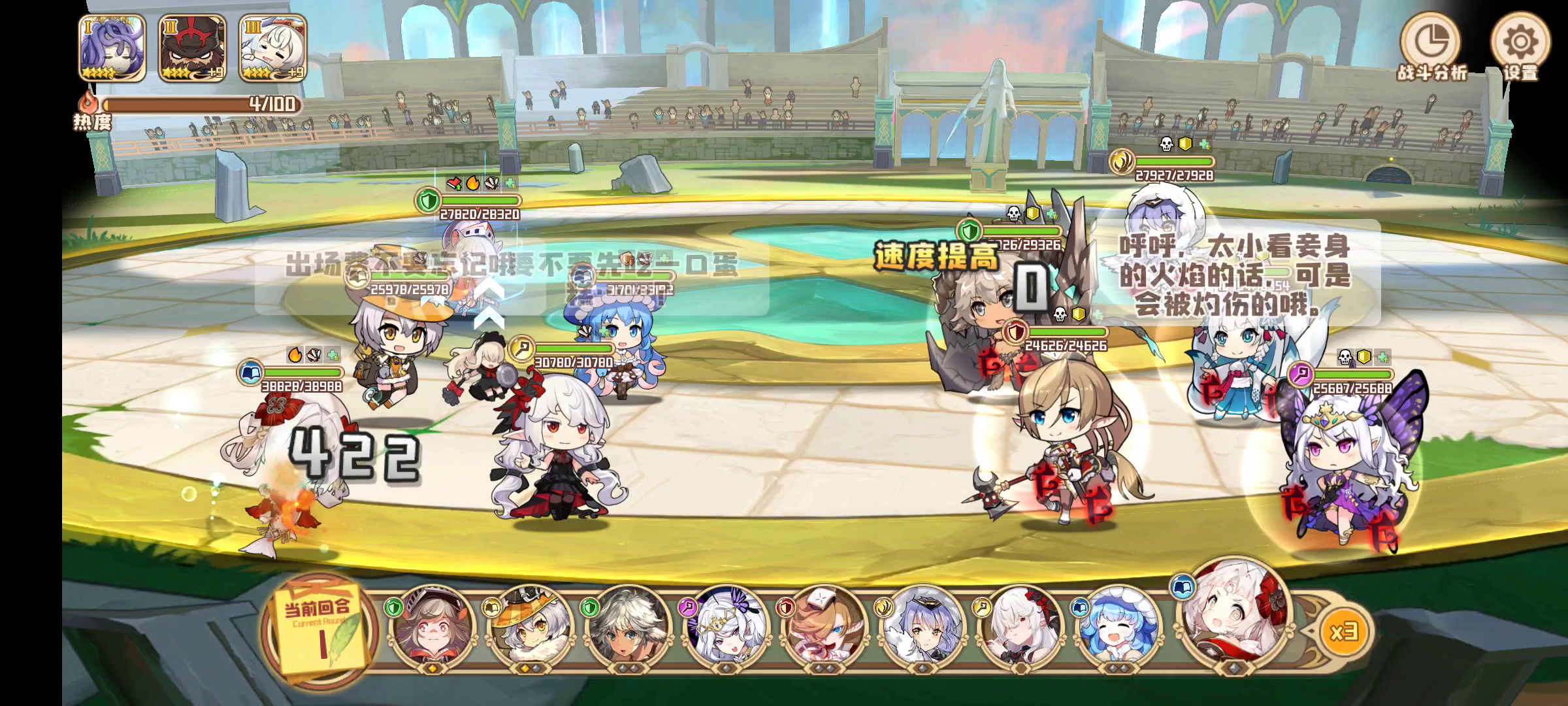 勇者套艾德文娜,没有开场不稳定的高爆发,不足以稳定针对前排,得到的是非常稳定的持续输出,配合下午茶1,伤害恐怖